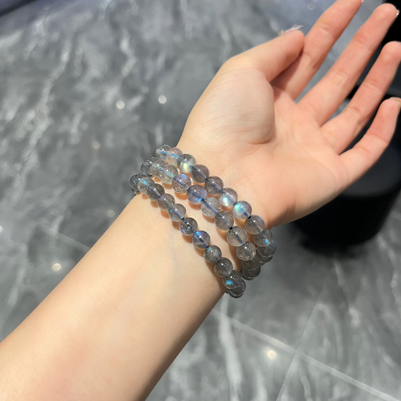 捡漏天然灰月光单圈手链拉长石女蓝月光水晶饰品朋友学生款礼物