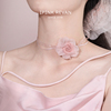 IPINK粉色玫瑰花丝带choker蝴蝶结项链女高级感锁骨链度假饰品