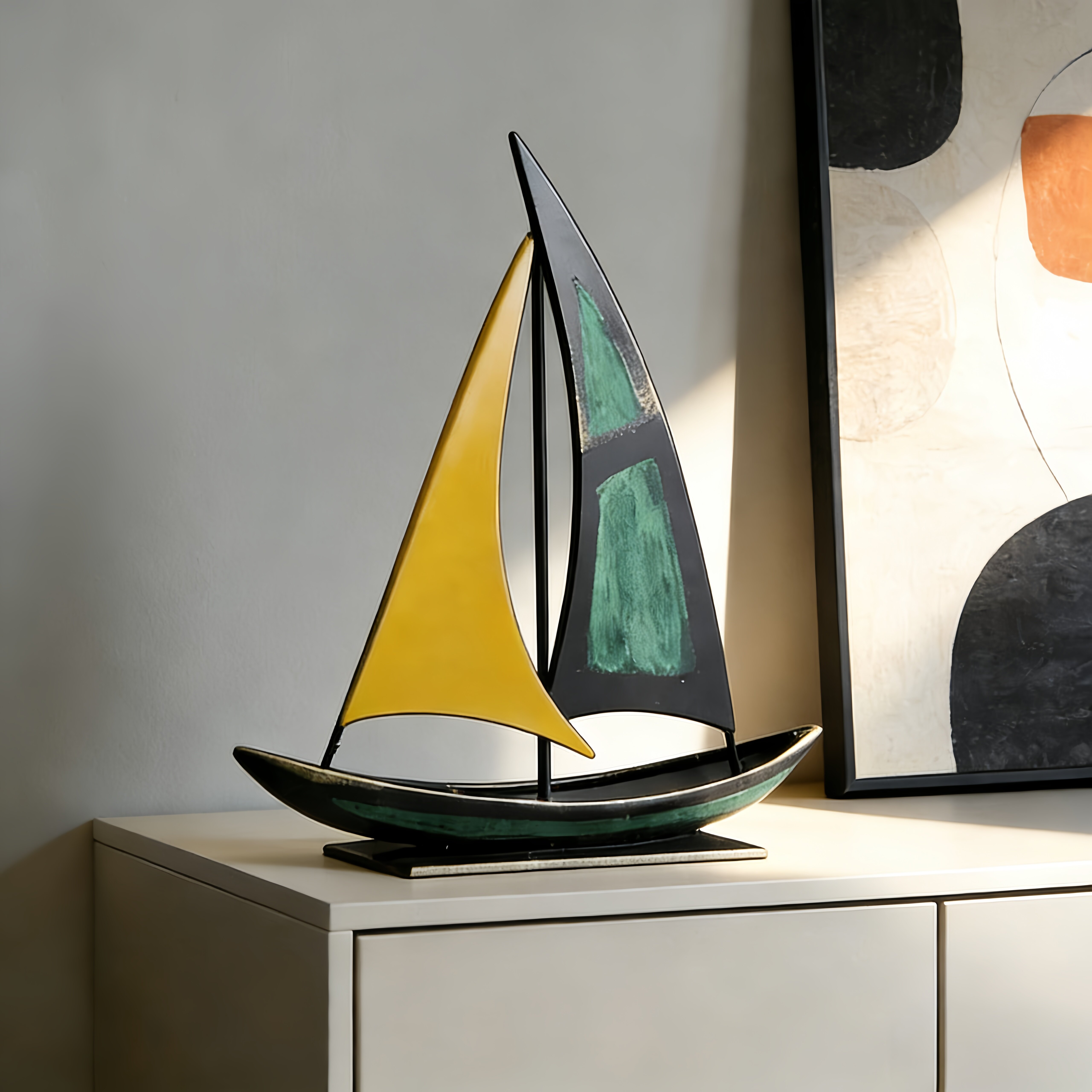 意式高级感小众一帆风顺帆船摆件客厅电视柜办公室轻奢高档装饰品
