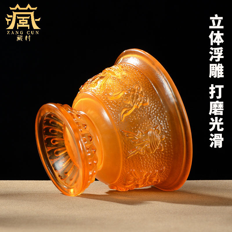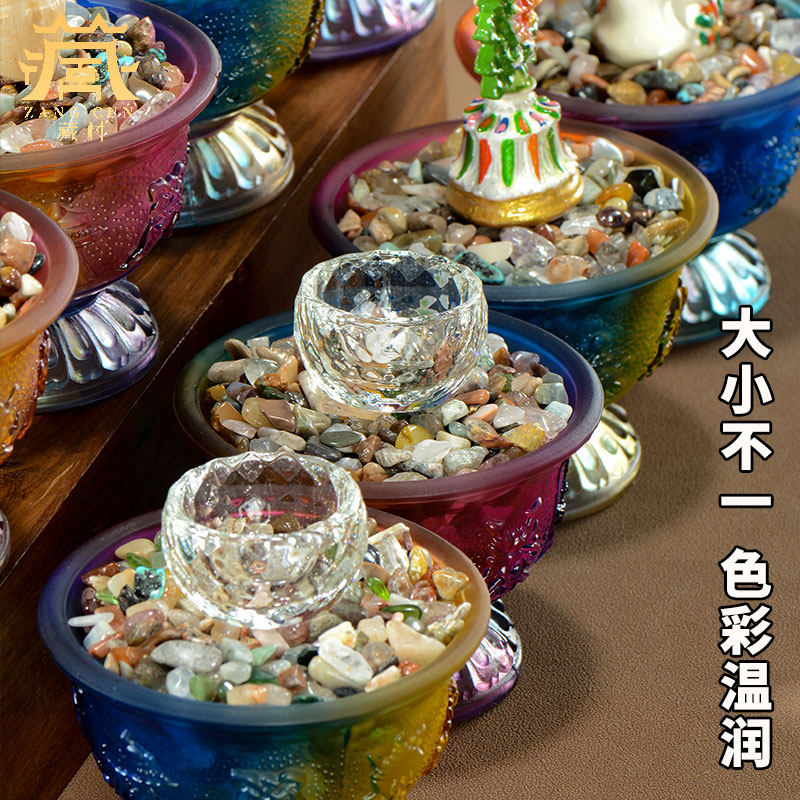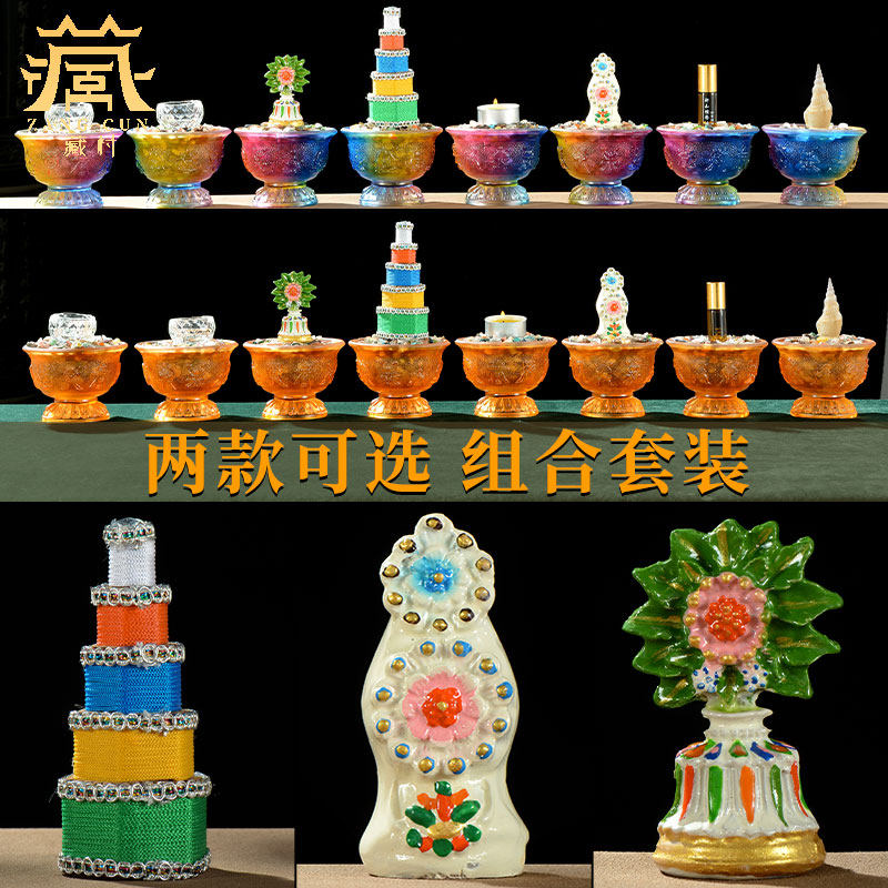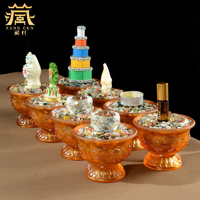 藏村八供套装家用桌面八吉祥供水杯七宝石朵玛食子海螺家用摆件