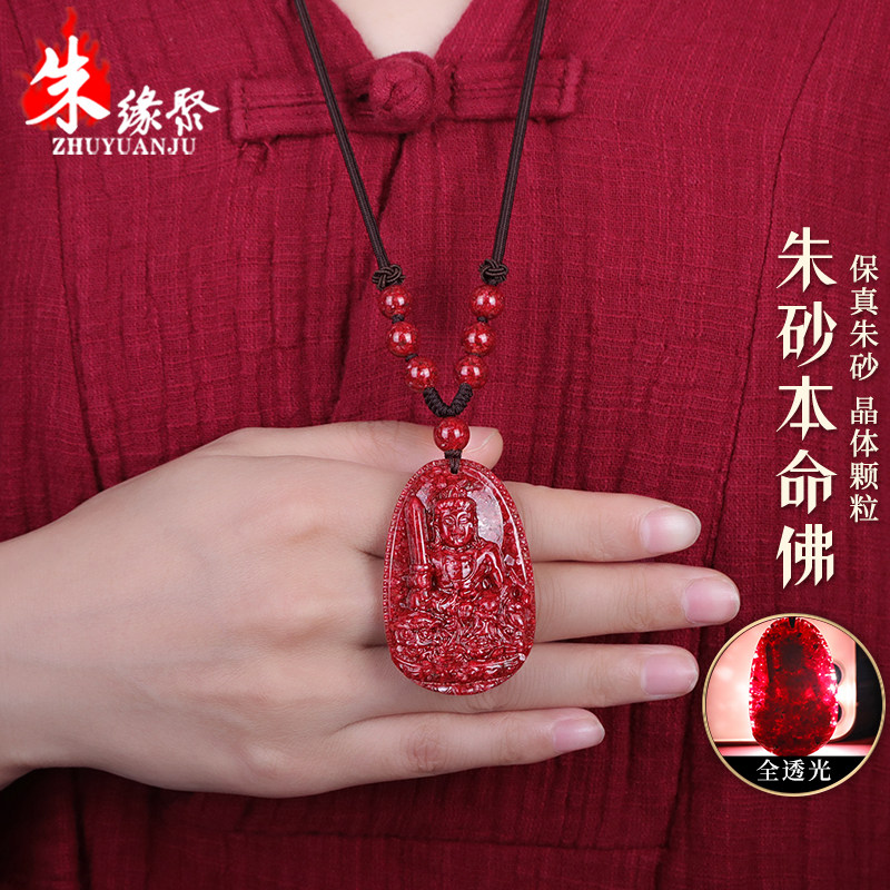 朱缘聚马年朱砂本命佛吊坠男高含量晶体颗粒透光生肖守护神挂件女