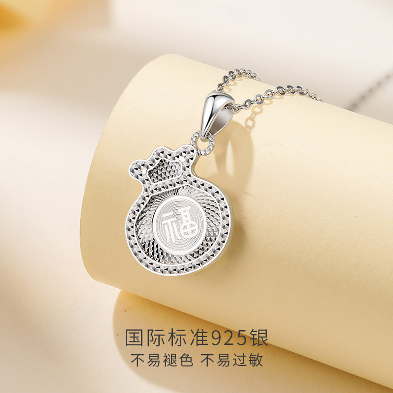 六桂福925纯银福袋挂坠女款轻奢小众气质配饰颈链国潮锁骨链礼物
