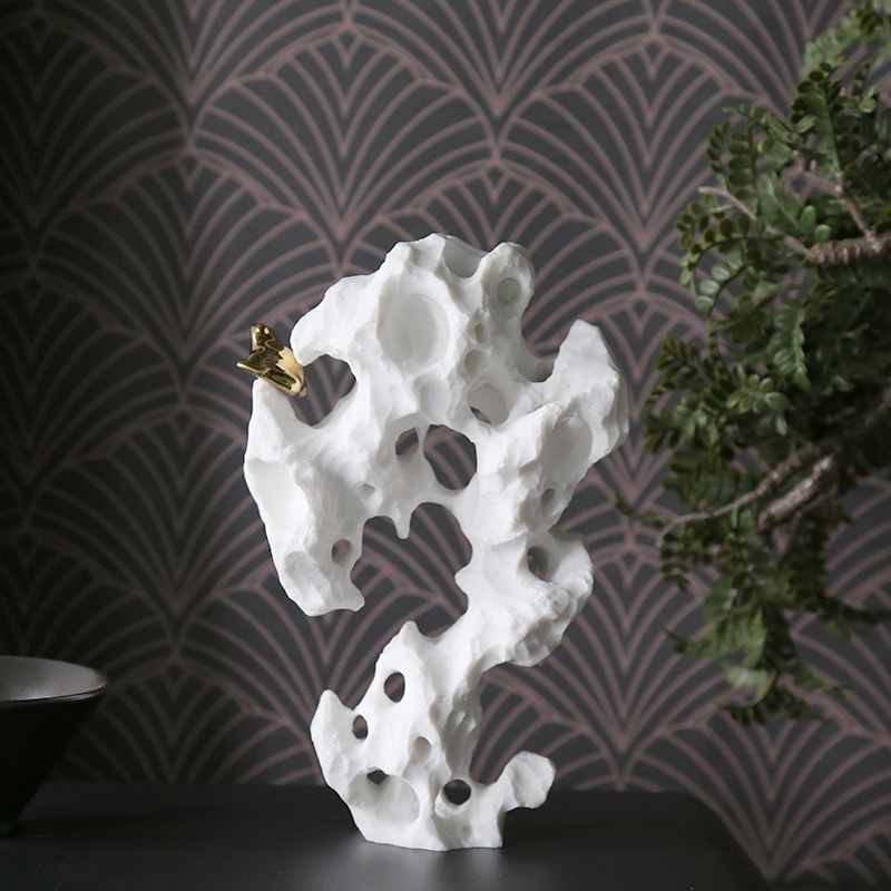 禅意太湖石托盘组合摆件新中式样板房间茶室玄关书柜茶几软装饰品