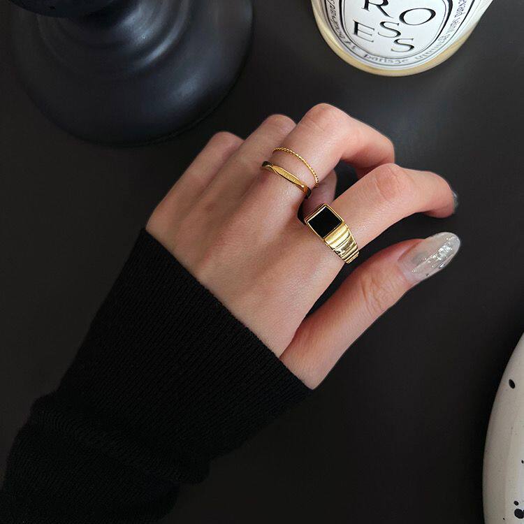钛钢戒指 黑色方形戒指女小众复古轻奢指环不掉色百搭食指戒