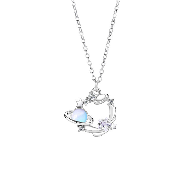 原创蓝色梦幻星球项链女轻奢时尚气质星星锆石不锈钢锁骨链