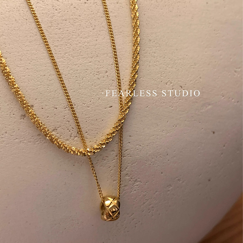 法式小众设计叠戴高保色格纹项链气质高级感百搭水晶ins锁骨链女