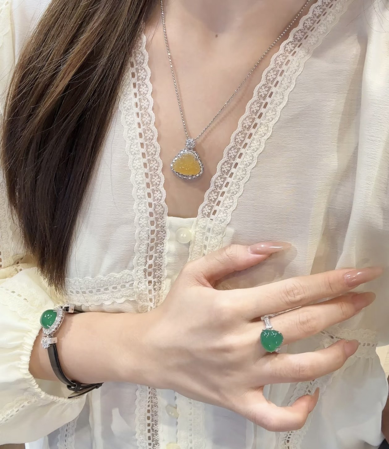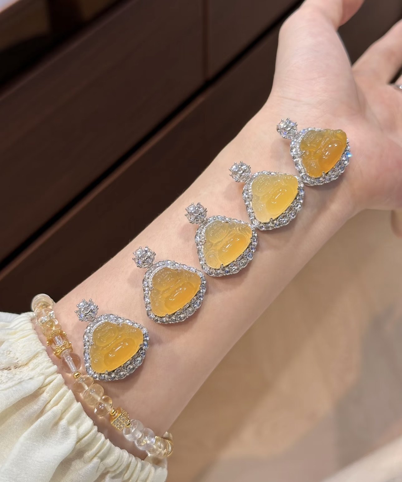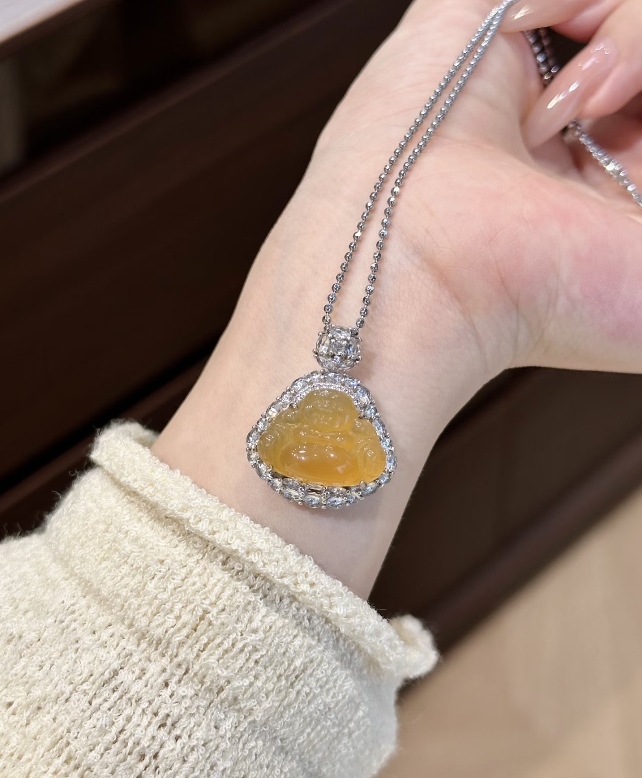 不掉色925银镀金天然黄翡色翡翠佛公项链女款时尚百搭首饰品礼物