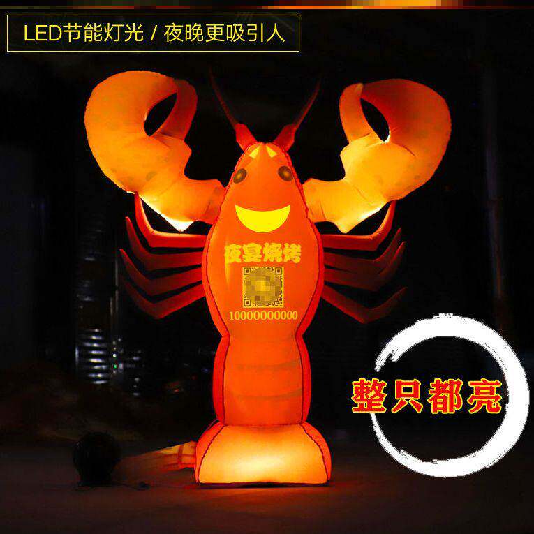 充气小龙虾模型气模盱眙卡通定制夜光灯光开业气球拱门发光大龙虾