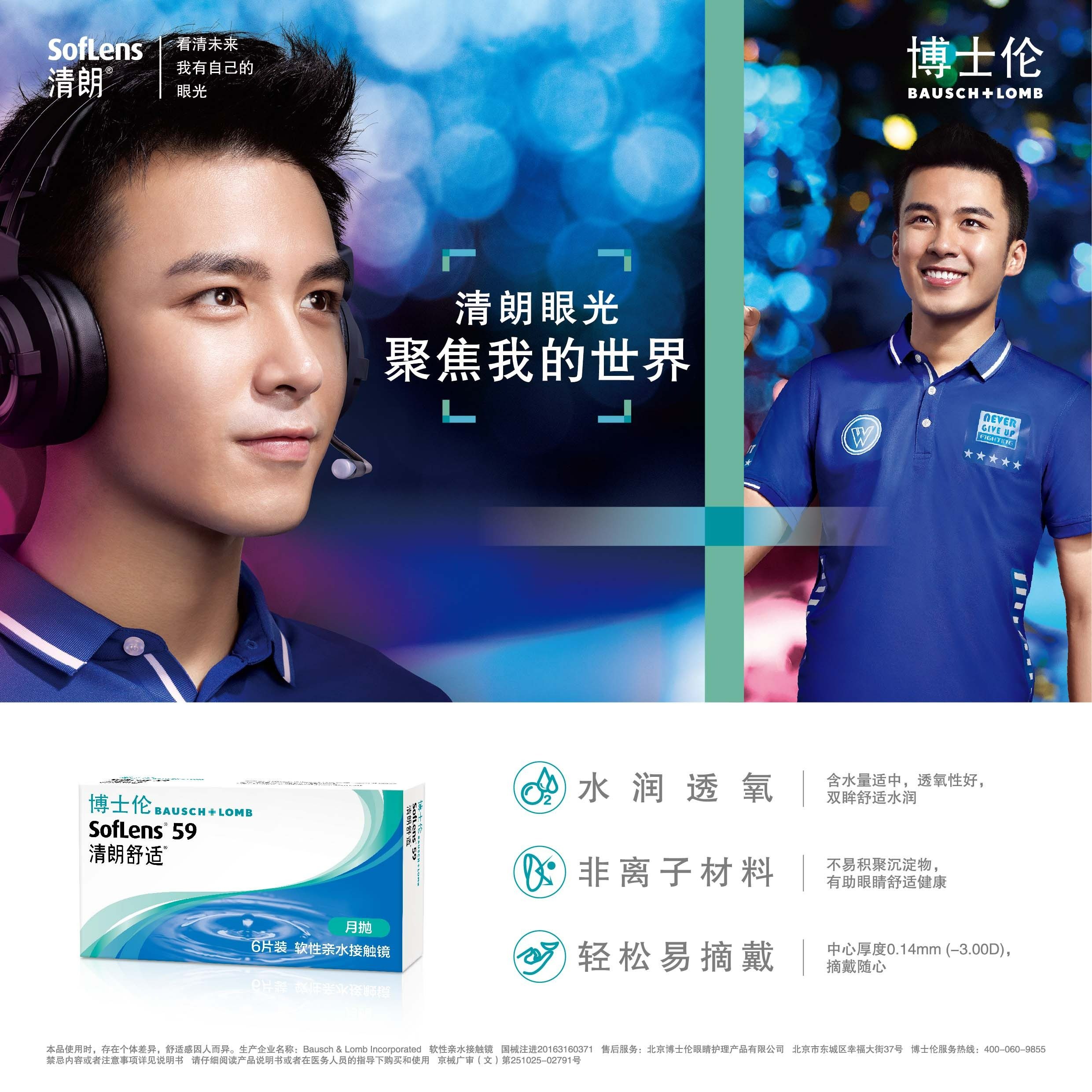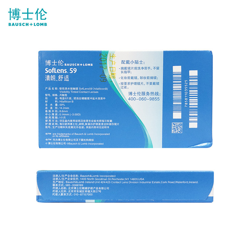 博士伦隐形近视眼镜清朗舒适透片月抛6片装水润透氧官网正品