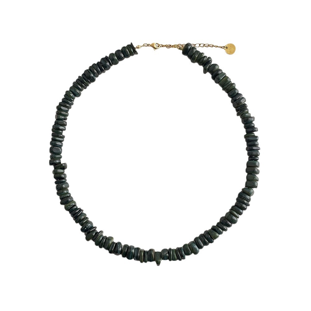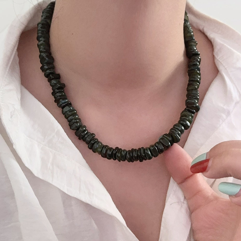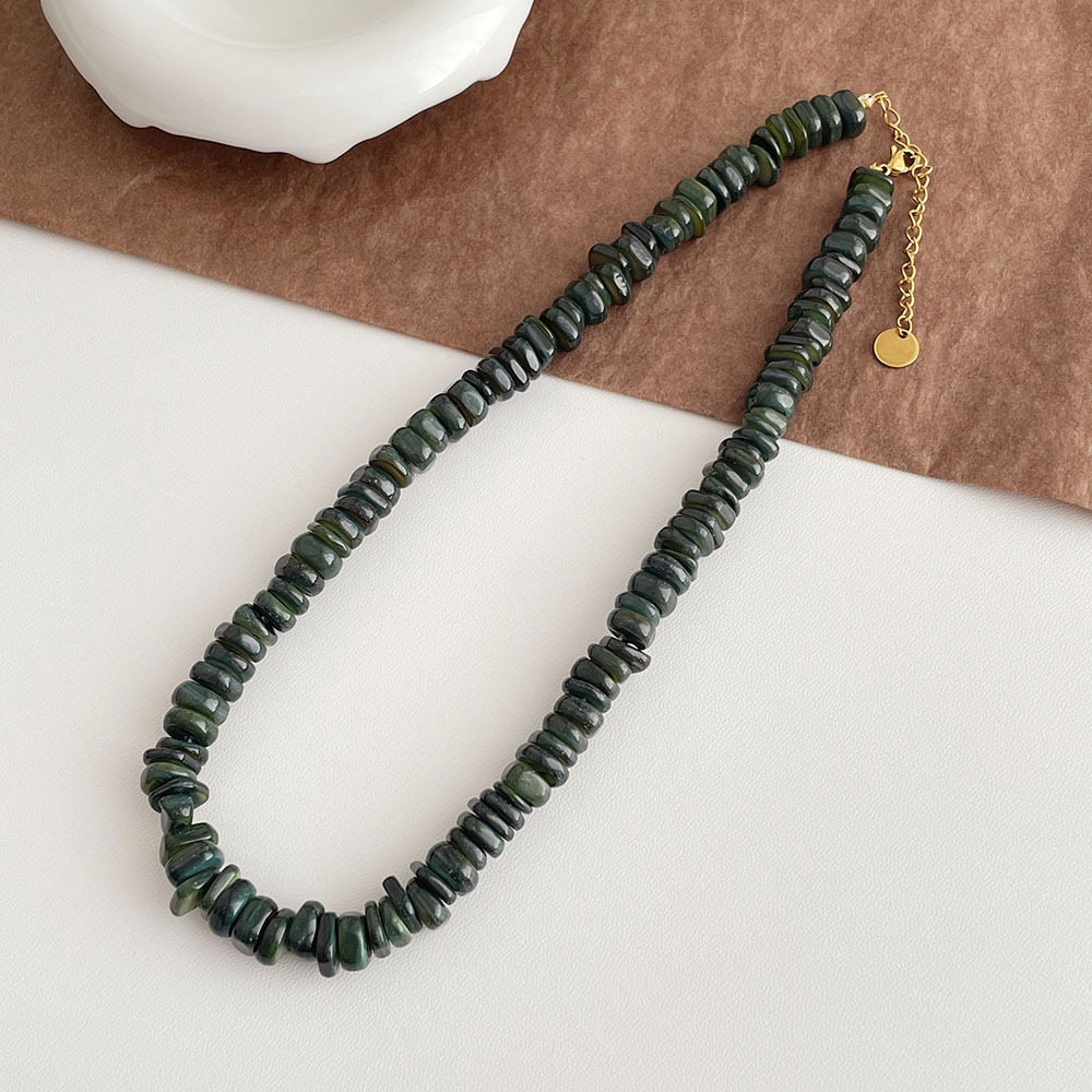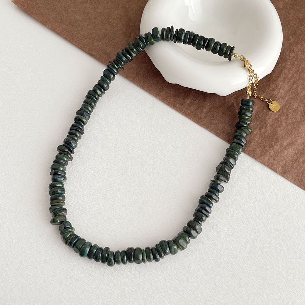 欧美简约设计感天然碎石项链女时尚气质墨绿色串珠锁骨链颈链配饰