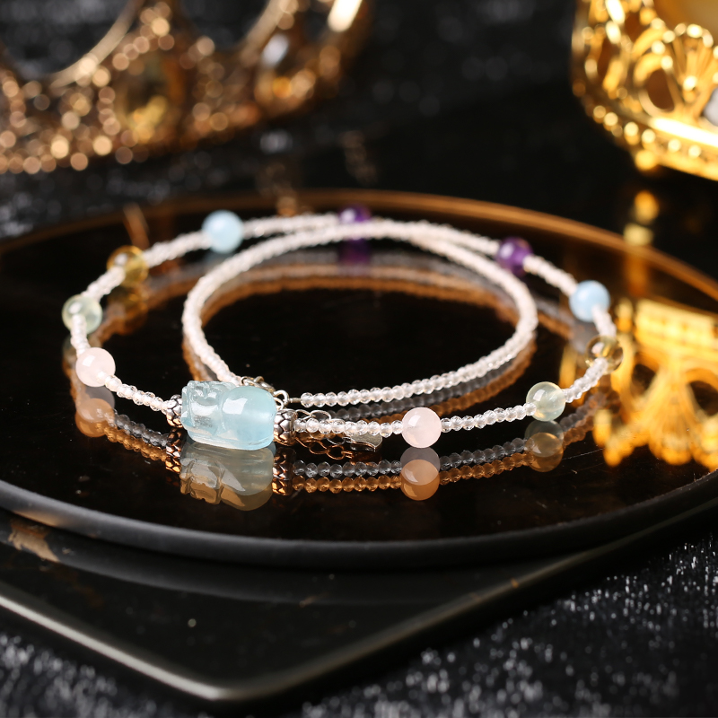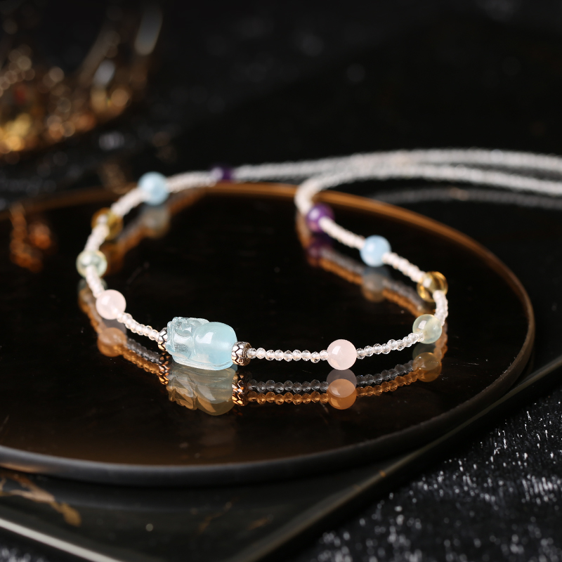 灵机生活馆「海洋之心」海蓝宝貔貅多宝水晶项链高颜值送礼新款