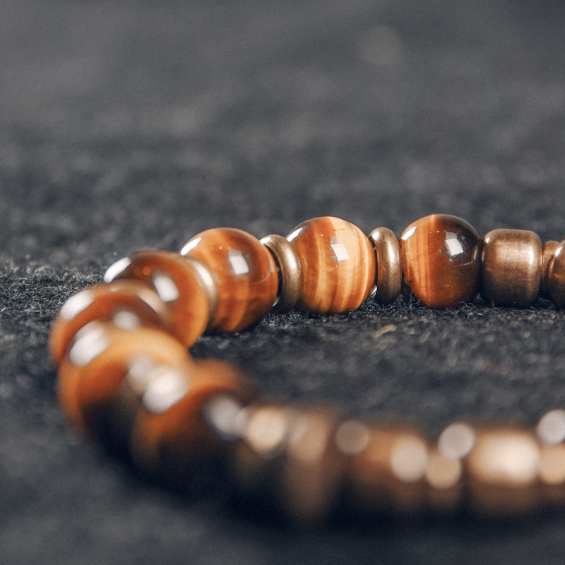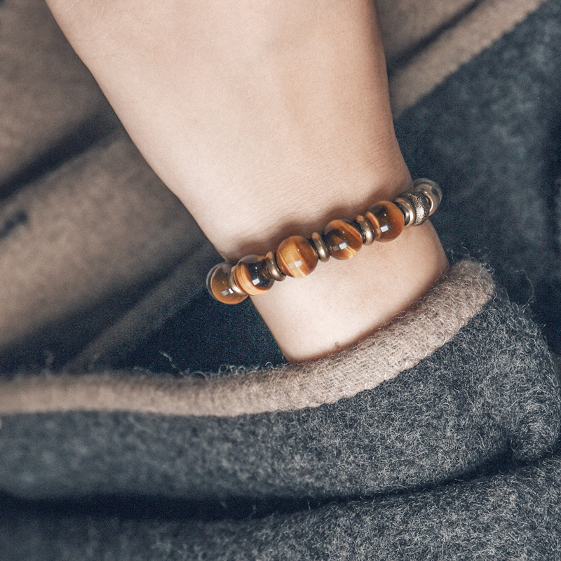曲尾花原创设计师黄虎眼石混搭铜珠个性手串男小众潮牌手链女饰品