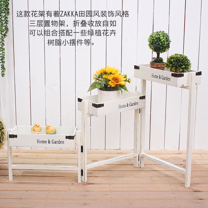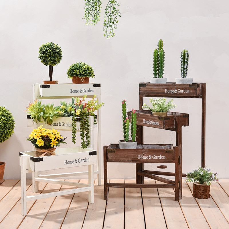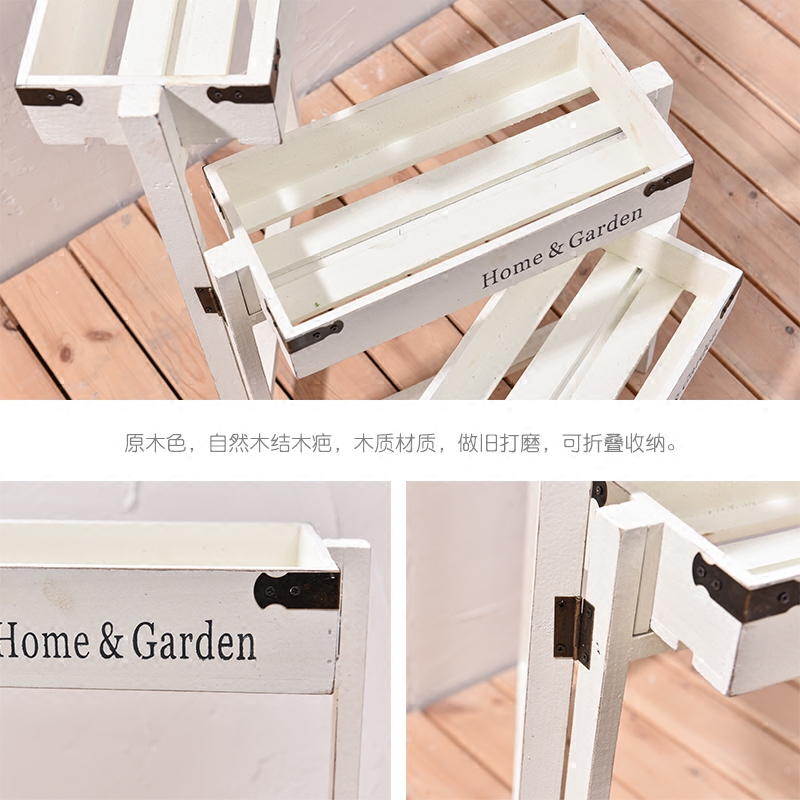 田园做旧花架客厅室内多层木质阳台落地式阶梯多功能植物花架摆件