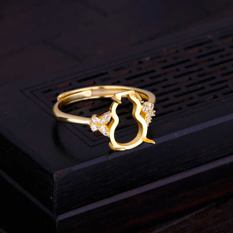 S925纯银戒指托 DIY手工镶嵌玉石翡翠蜜蜡琥珀葫芦戒指空托女戒托