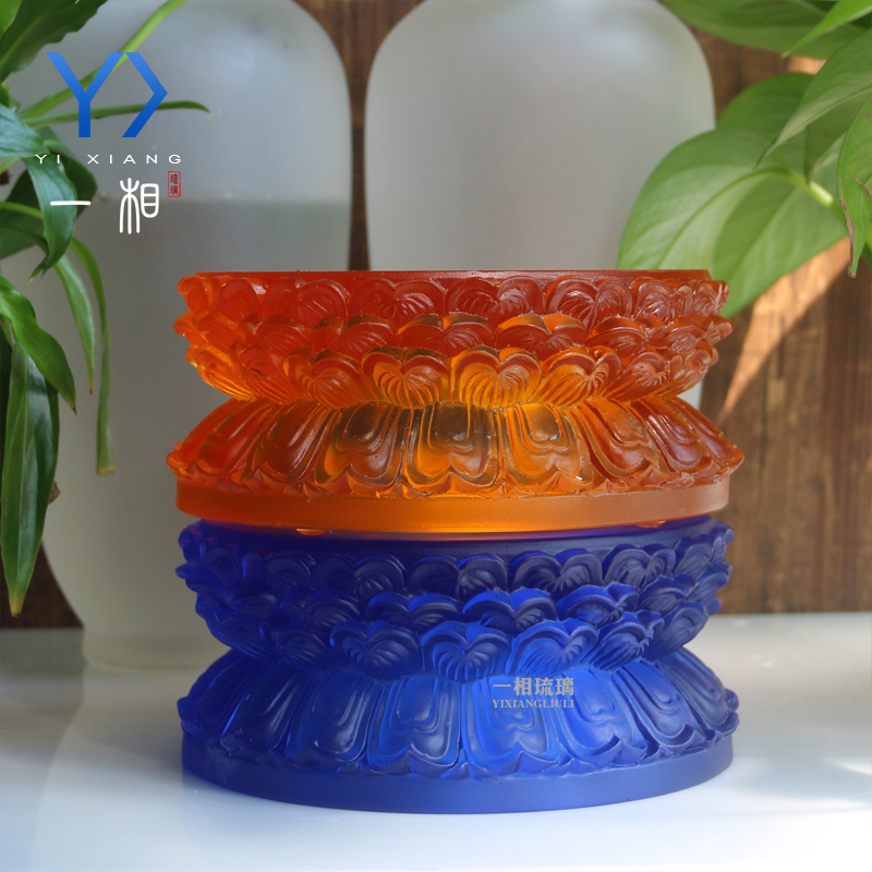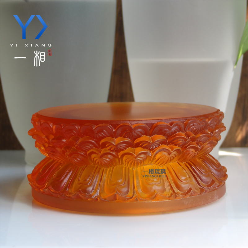 琥珀色琉璃莲花座 椭圆底座加高佛台 佛座观音莲台文玩托架
