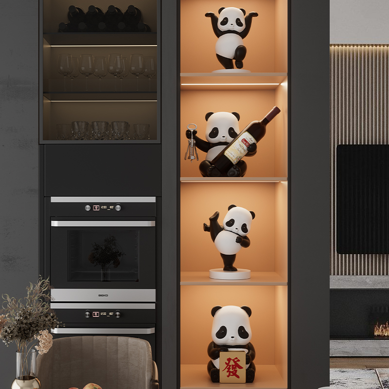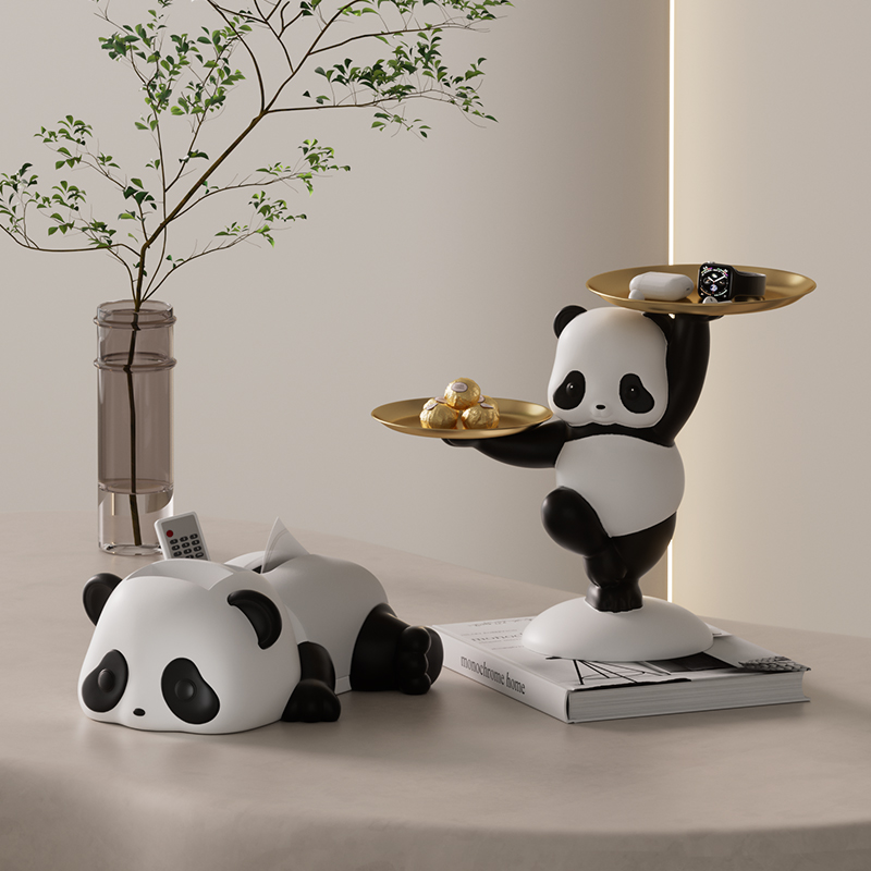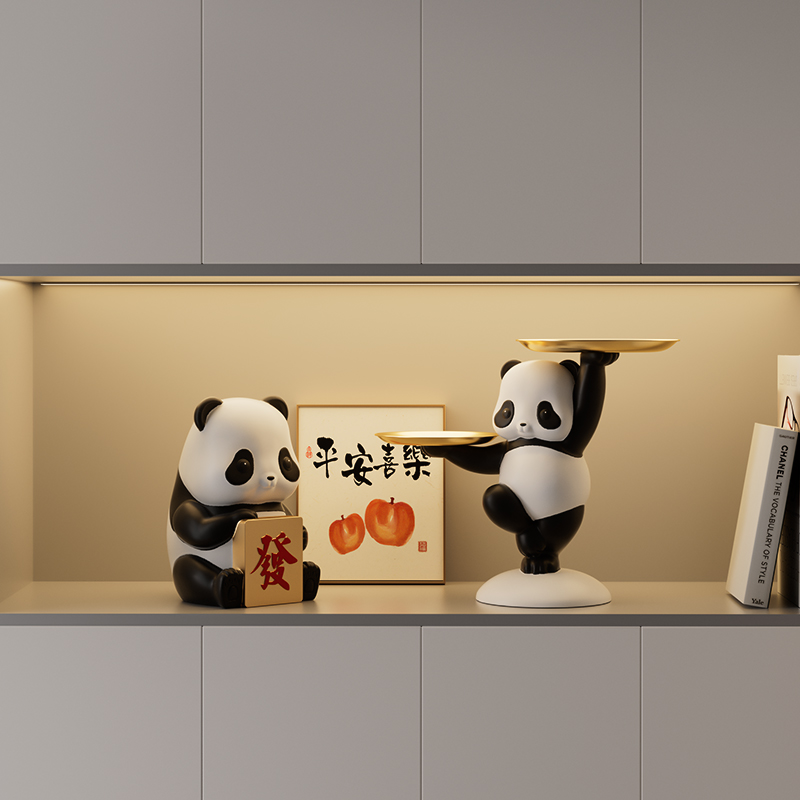 高端大气客厅熊猫酒柜摆件轻奢家居电视柜玄关P办公桌面工艺装饰