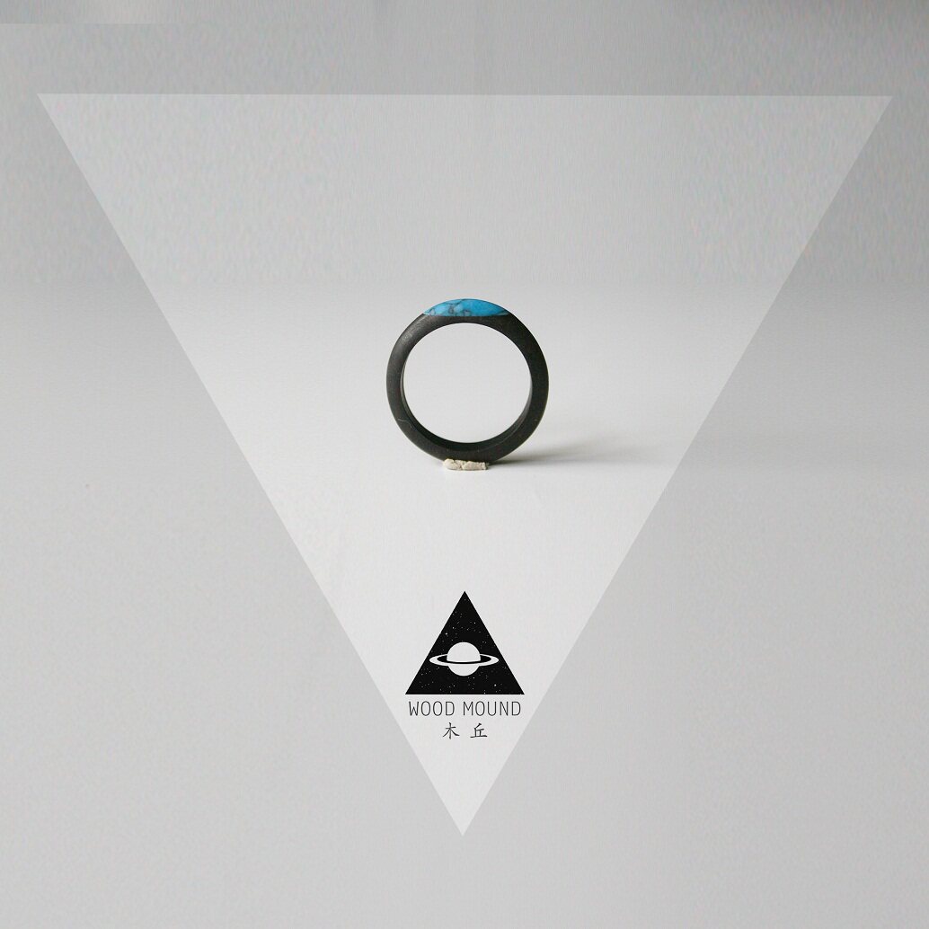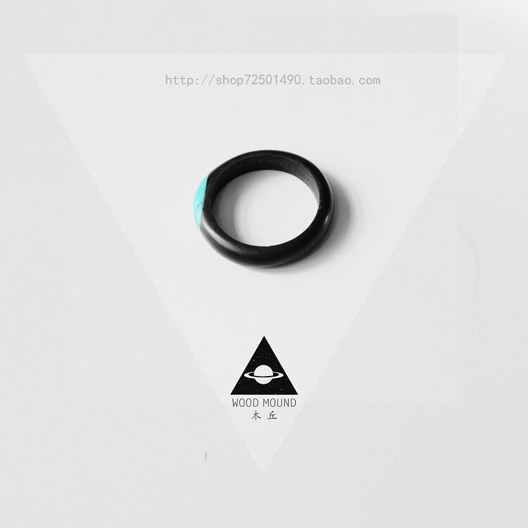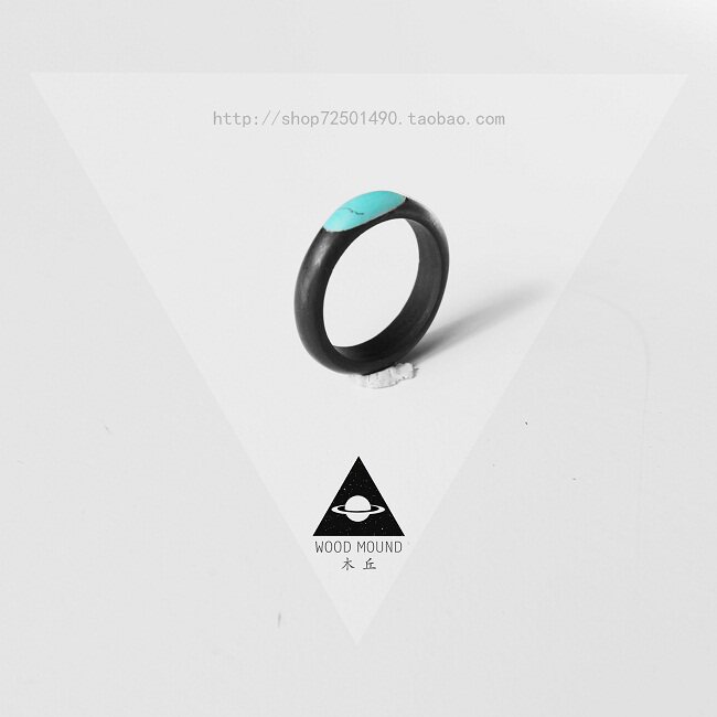 木丘 乌木黑檀木戒指镶嵌松石指环简约男女情侣对戒原创手工定制