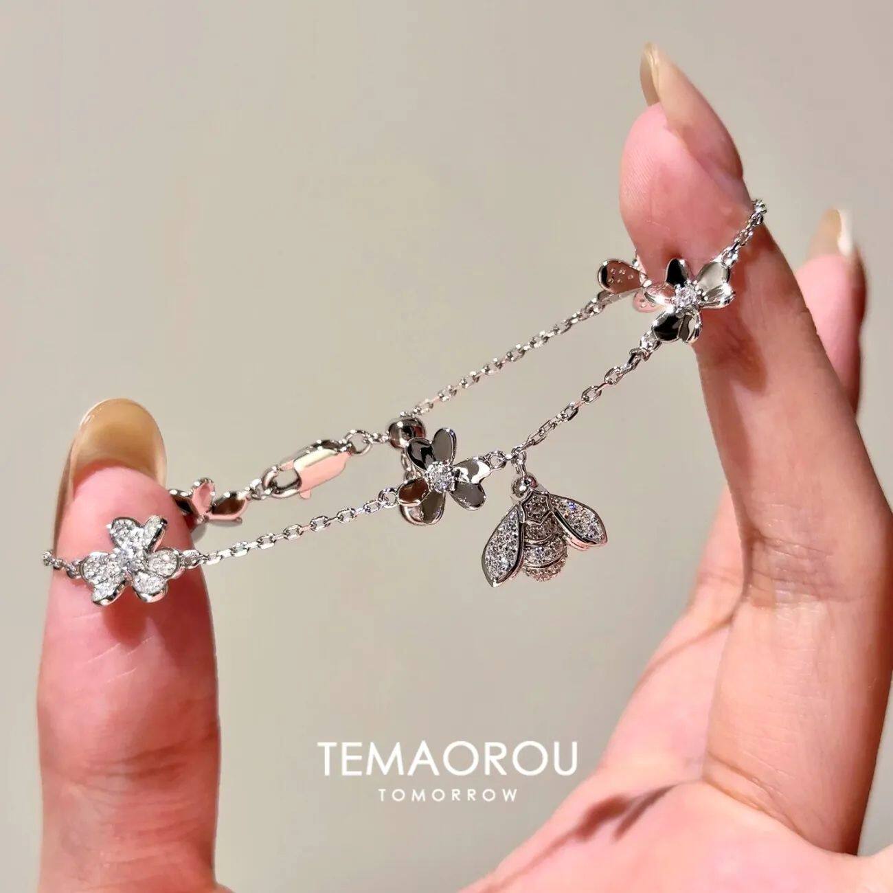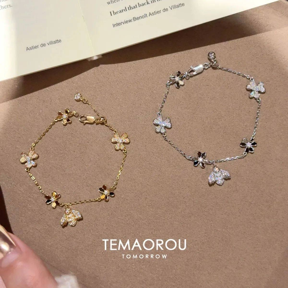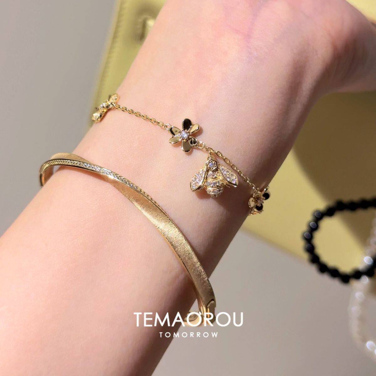 vintager中古花朵蜜蜂吊坠手链轻奢精致手环细闪bling手饰配饰