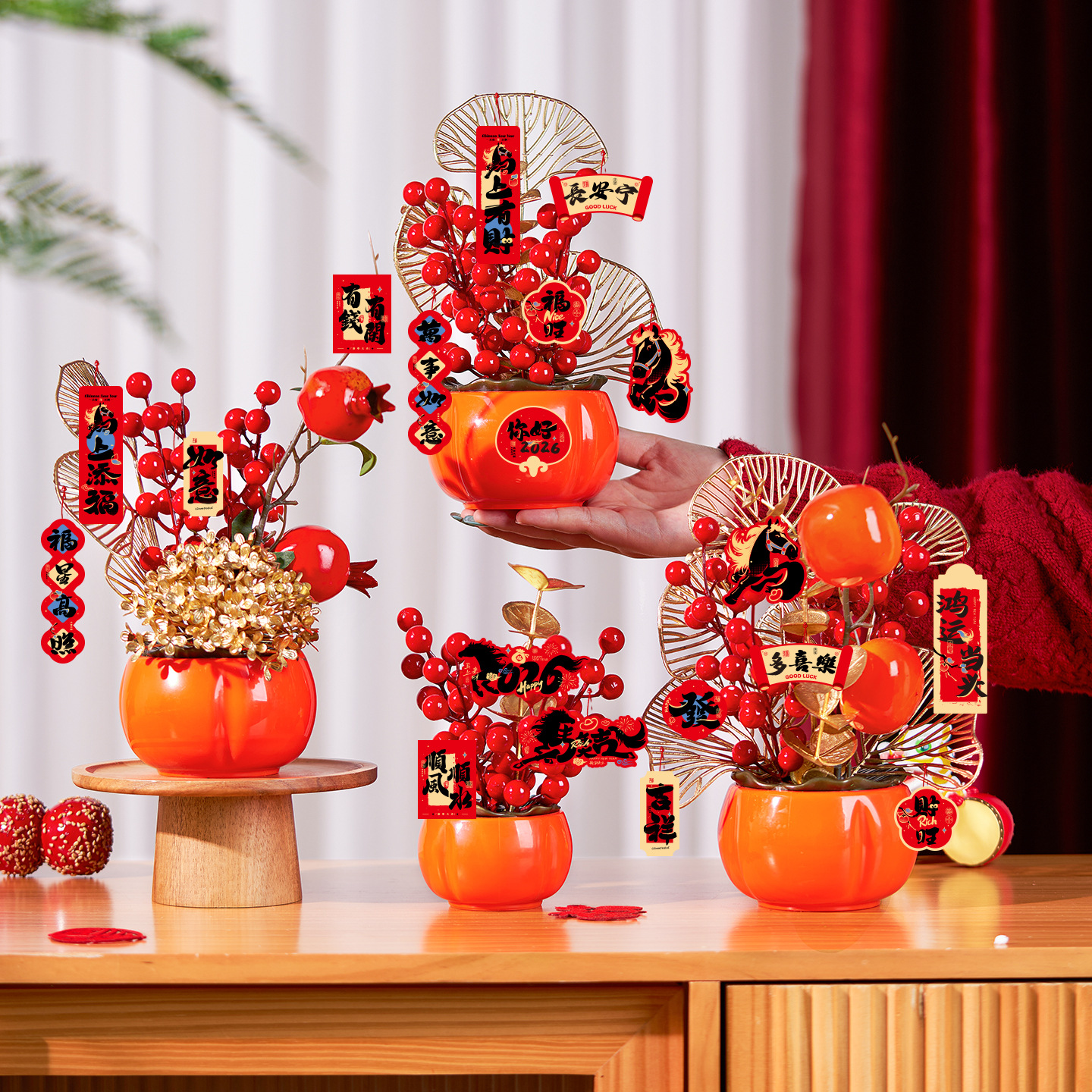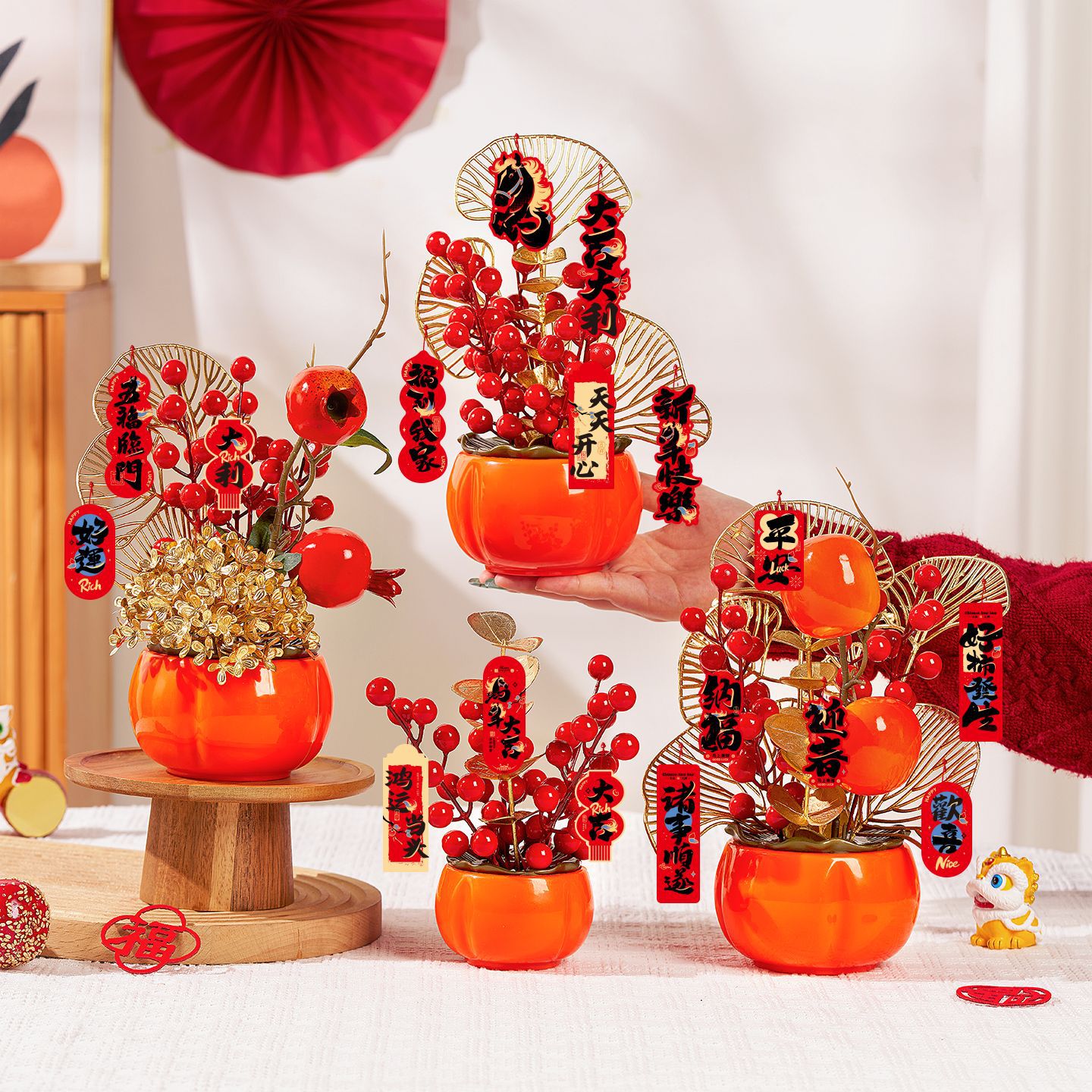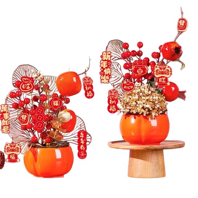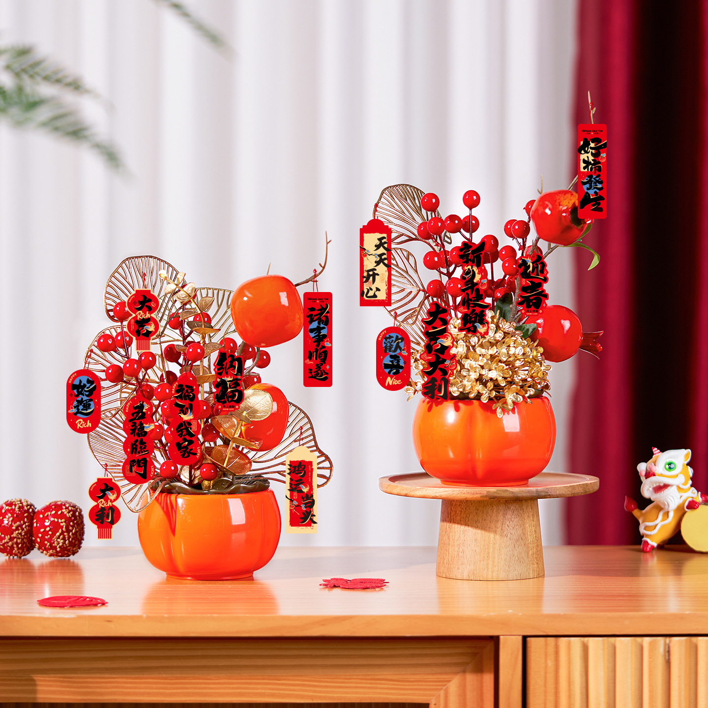 冰箱上的装饰摆件客厅茶几上摆放的花空调柜机红果发财果仿真假花
