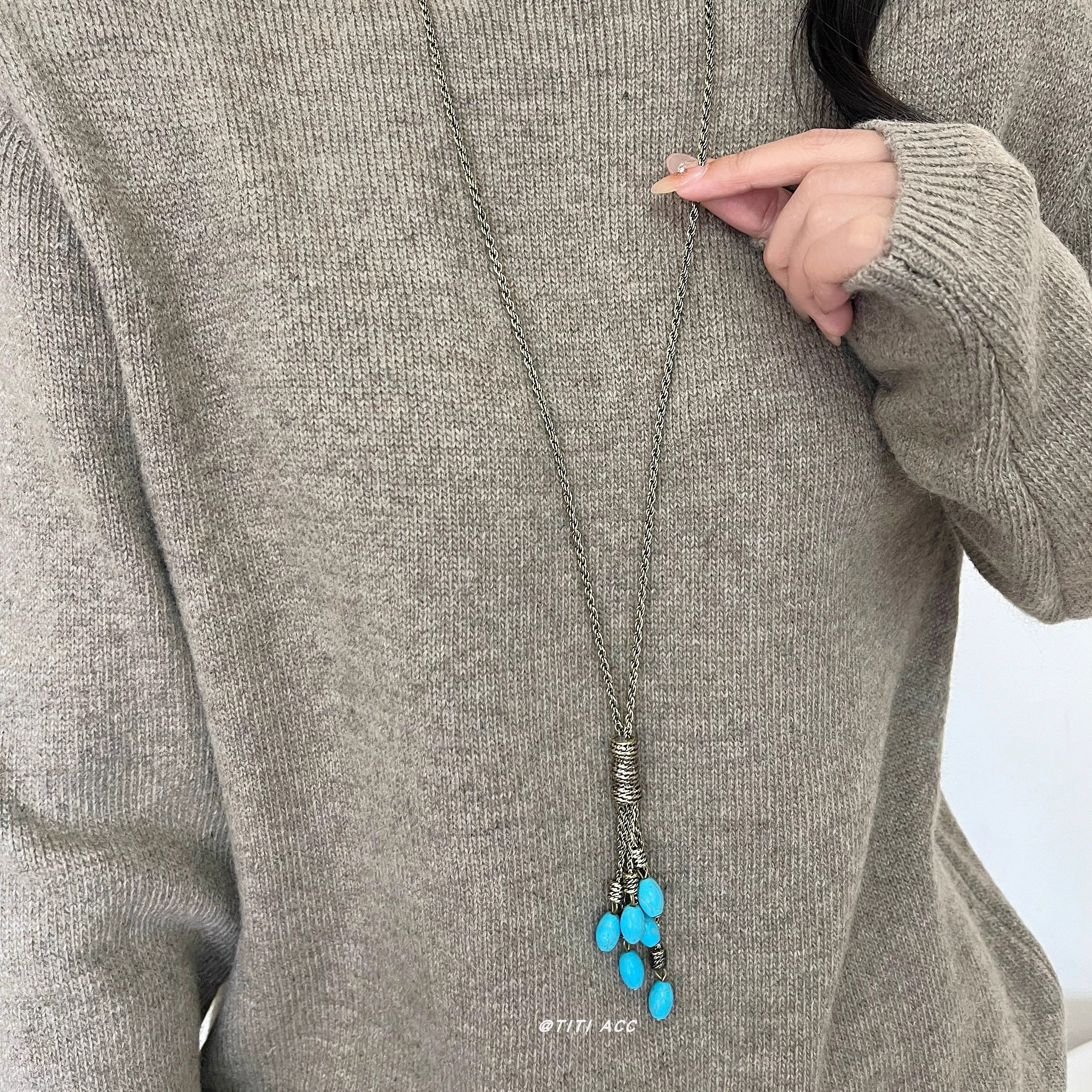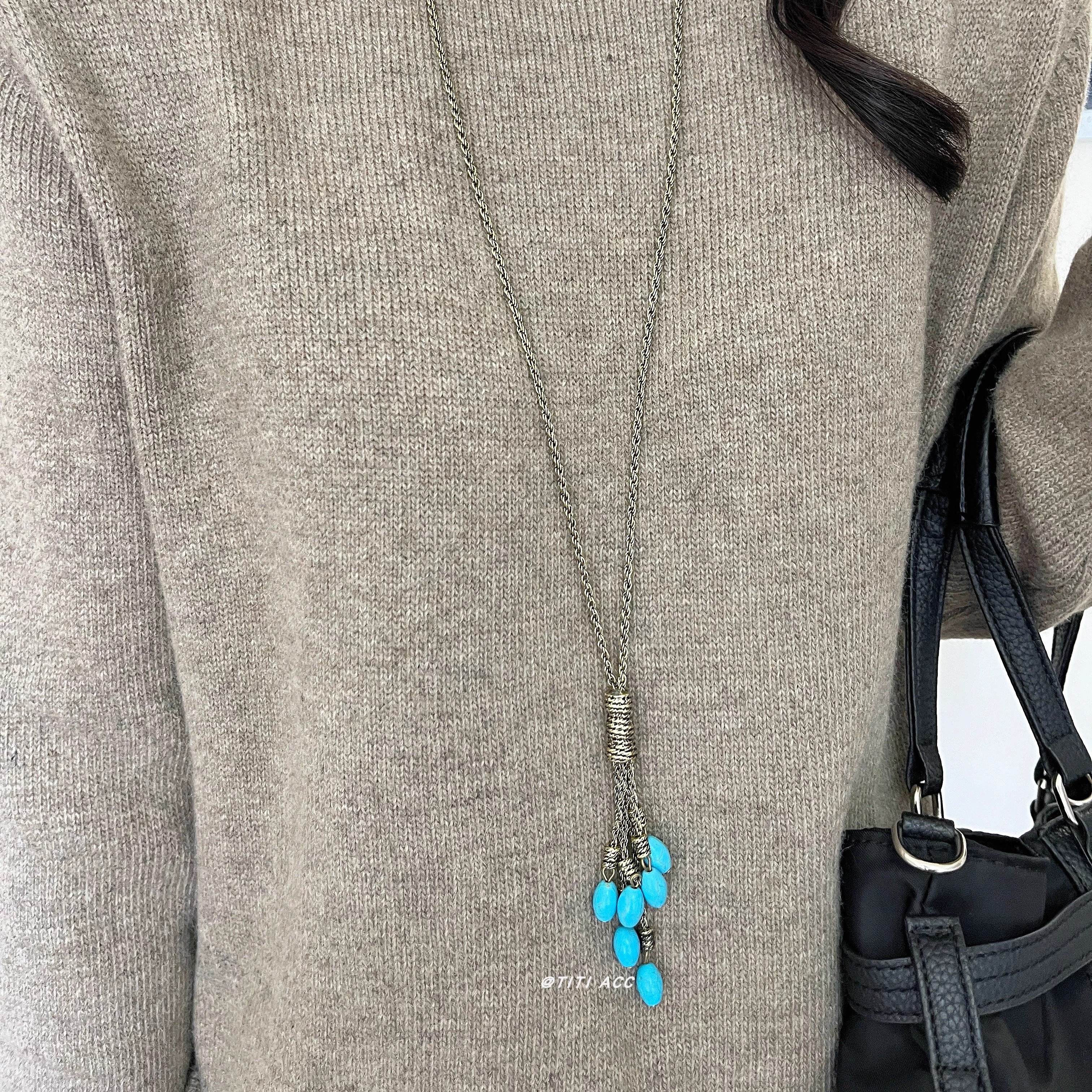 波西米亚民族风绿色流苏吊坠项链女轻奢小众高级感复古毛衣链配饰