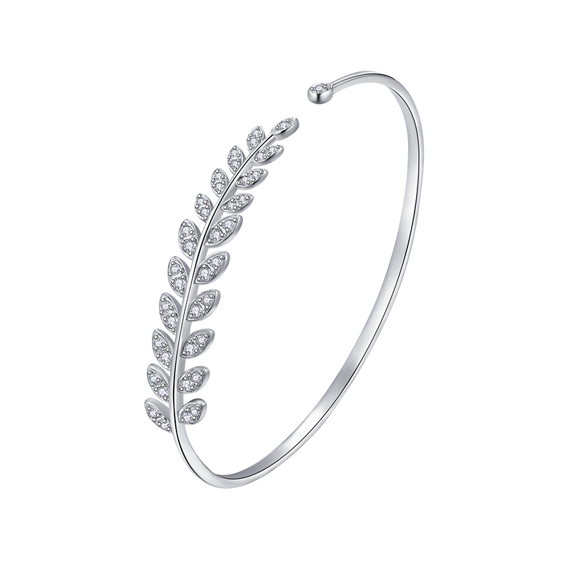 伊泰莲s925银手镯女友生日礼物精致叶子植物元素清爽简约时尚手饰