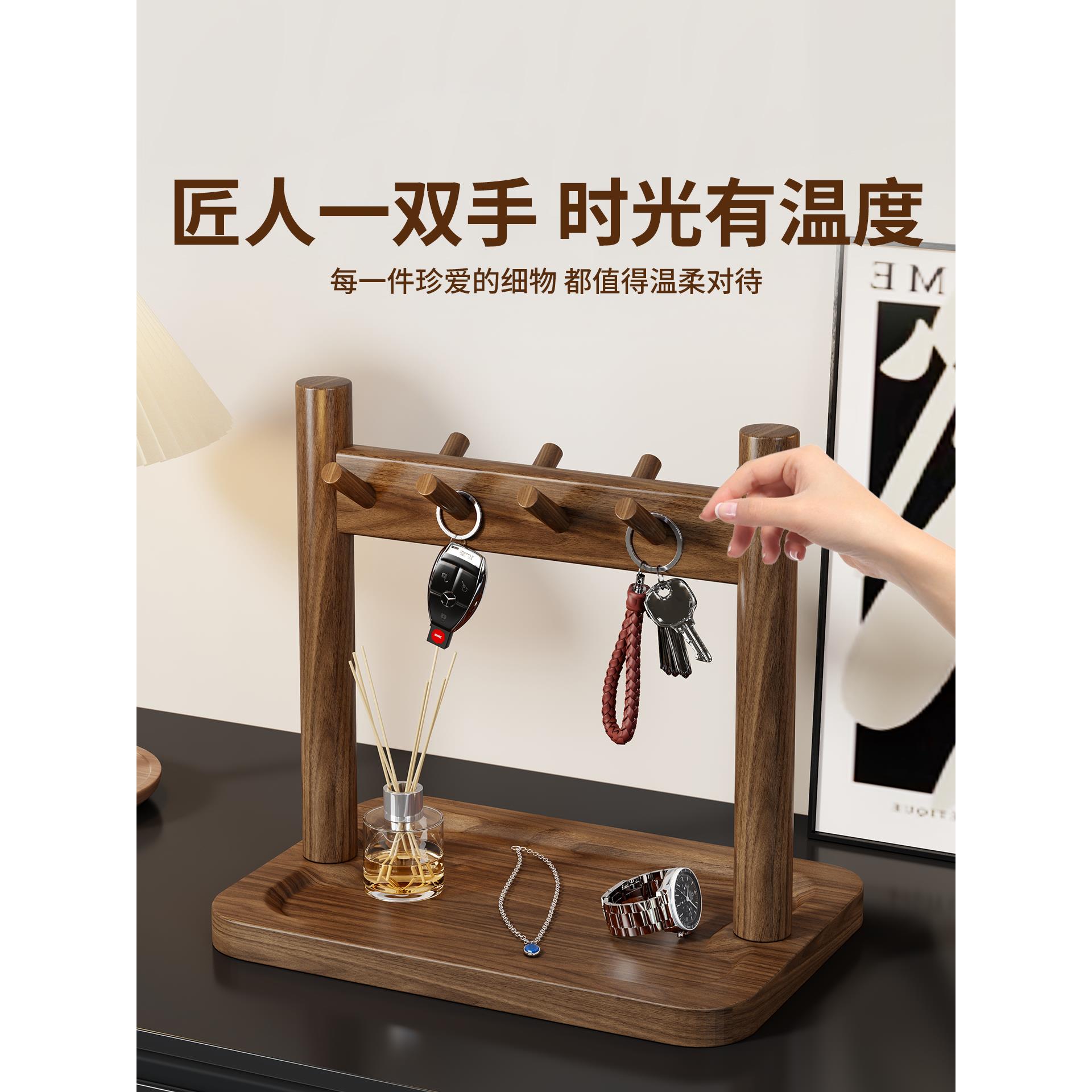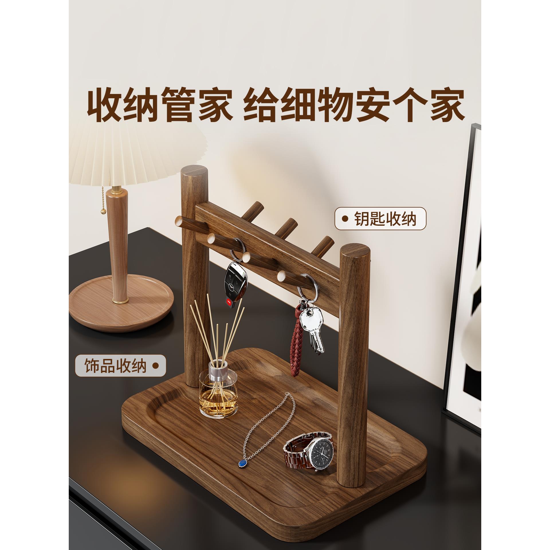 实木入户玄关置物架门口钥匙挂架鞋柜上摆件整理架桌面首饰收纳盒