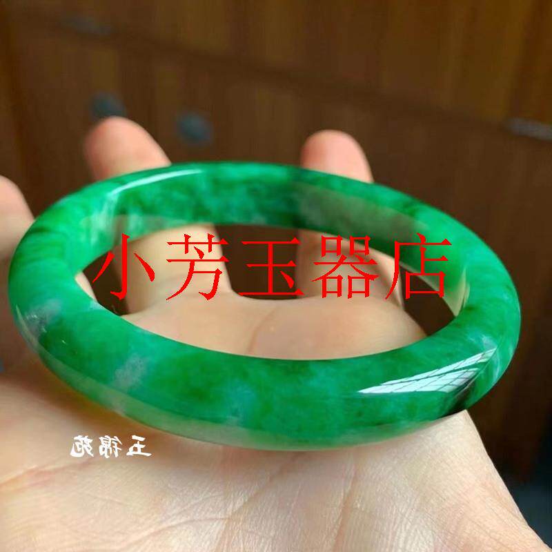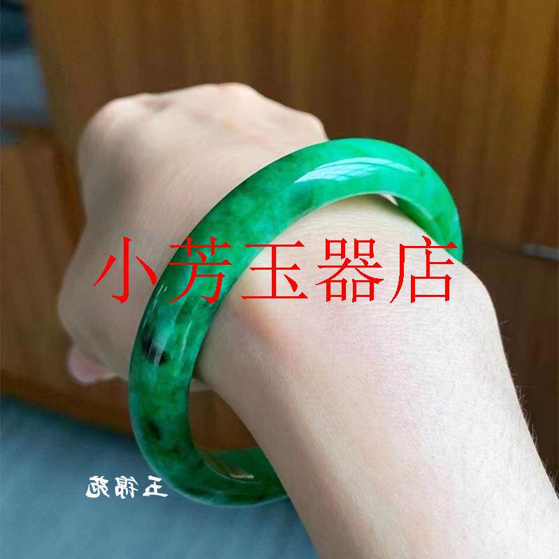 高精选缅甸老坑辣绿色翡翠色玉石手镯女圈口干青铁笼生旺夫少女镯