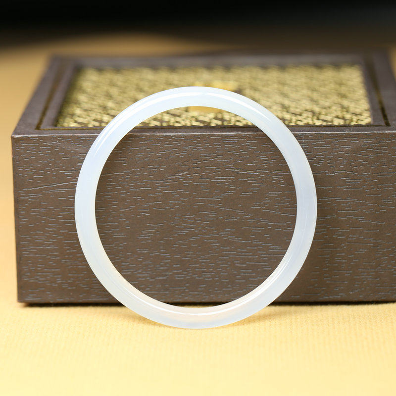 纯天然玛瑙冰透白色细圆条手镯冰种白色荔枝冻叮当镯百搭饰品女款