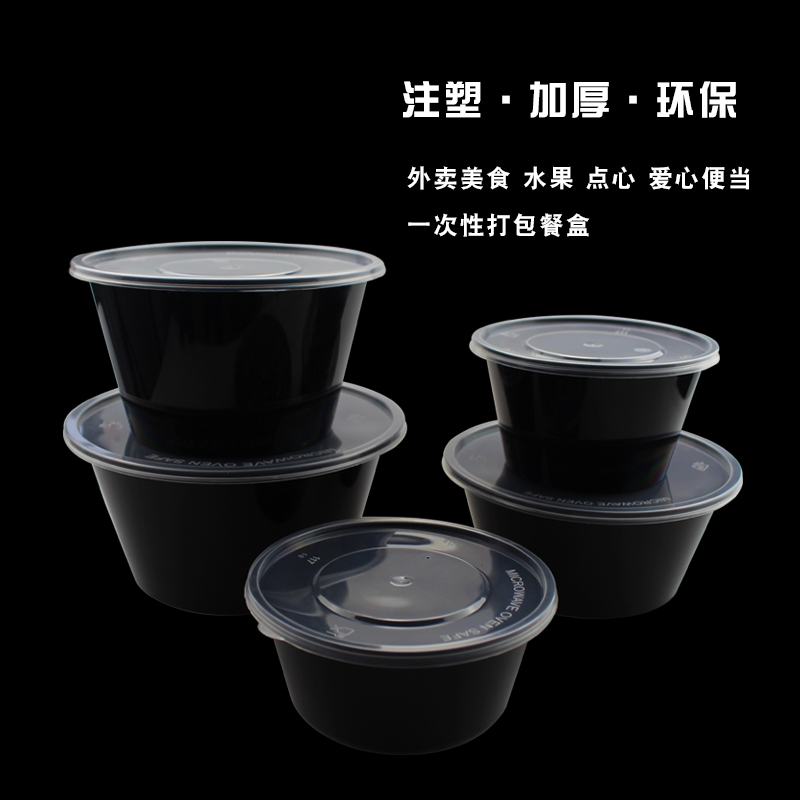一次性餐盒食品级圆形汤碗塑料餐具外卖打包快餐盖饭盒可微波加热