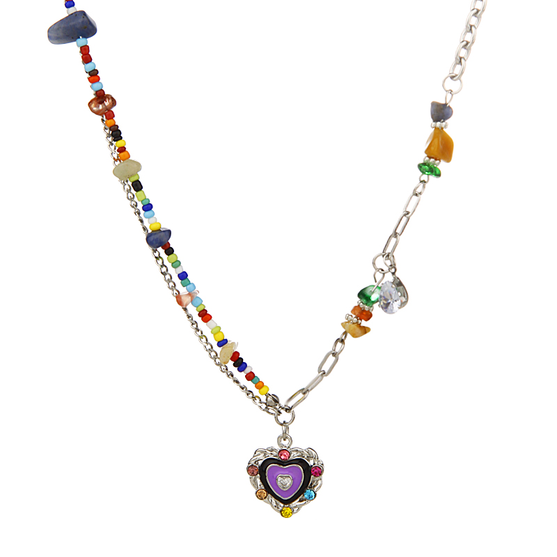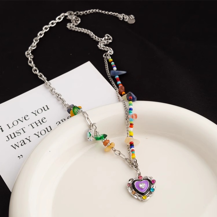 UNBEATEN彩色串珠爱心项链女夏小众辣妹y2k多巴胺锁骨链甜酷配饰