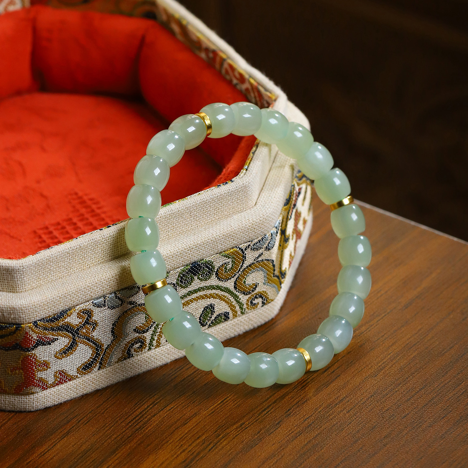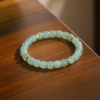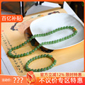 不议价和田玉翠青色7*8mm老型珠S925银配饰手链手串22g