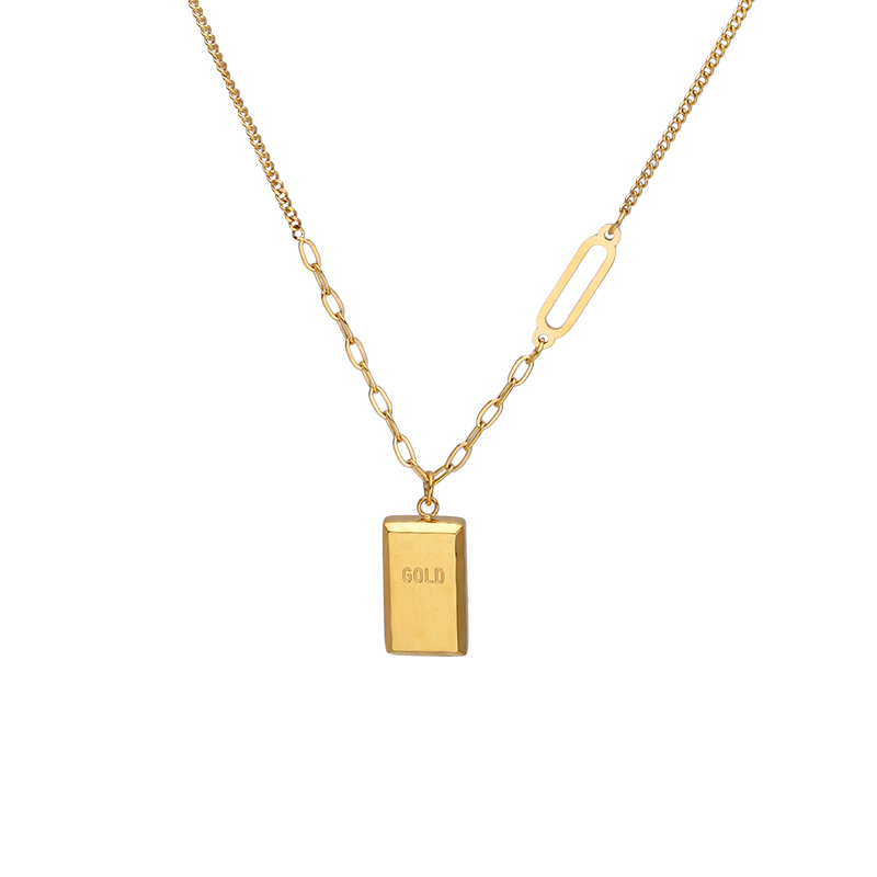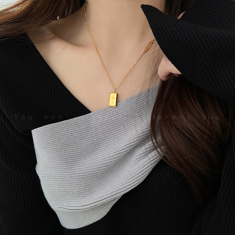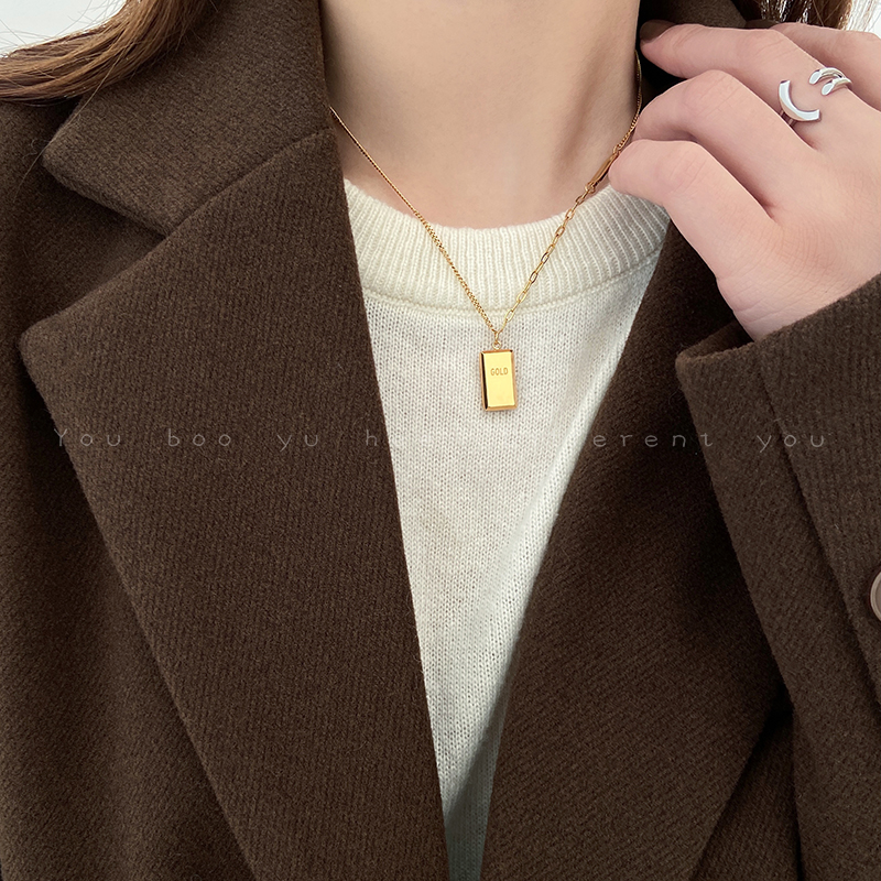 小金条方牌项链女轻奢小众设计高级感钛钢毛衣链不掉色卫衣链配饰