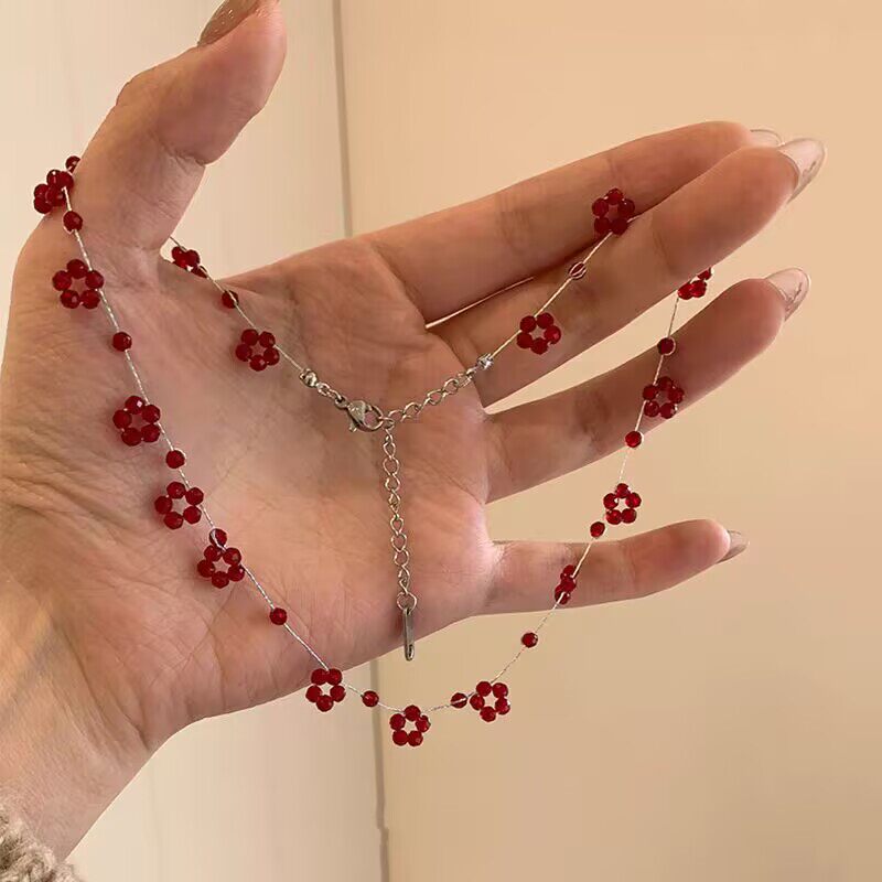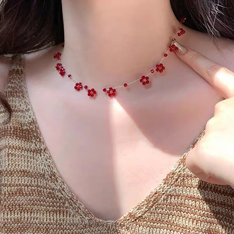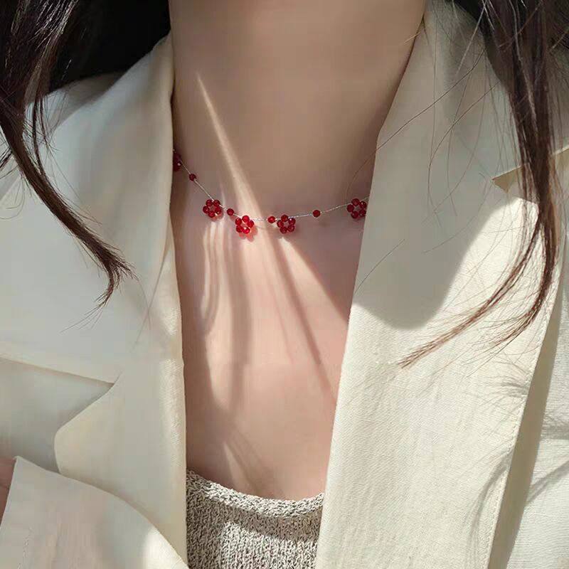 山野树莓~夏日清新红色花朵项链女2025新款高级感轻奢小众锁骨链