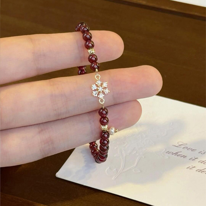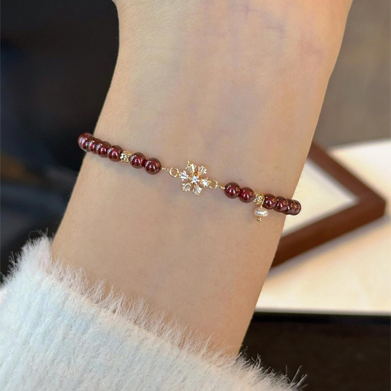 新中式石榴石珍珠串珠手链女款轻奢小众精致手串红色显白手饰闺蜜