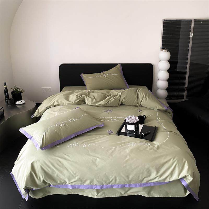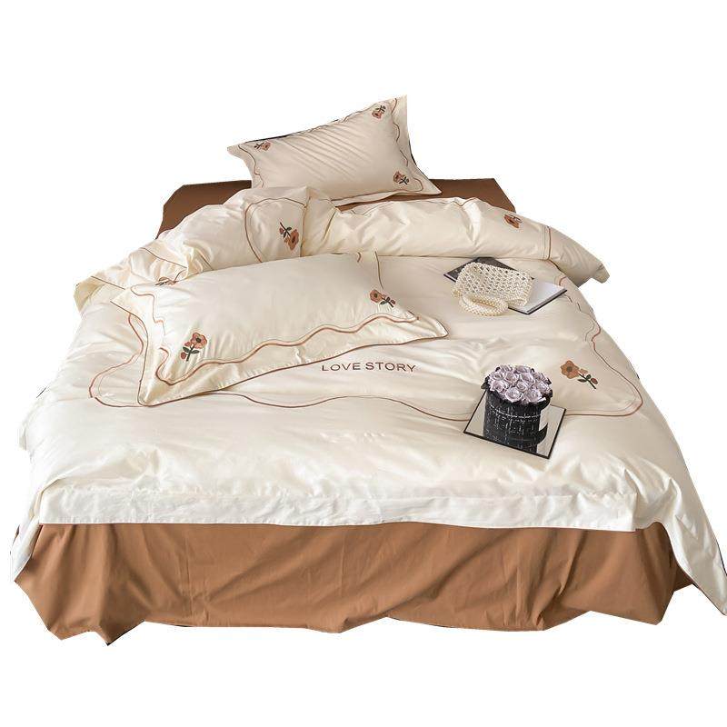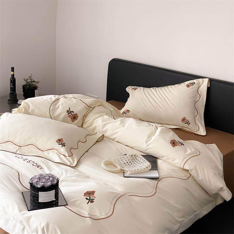 北欧简约A类纯棉字母花卉绣花双人床品40支全棉水洗棉刺绣四件套