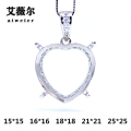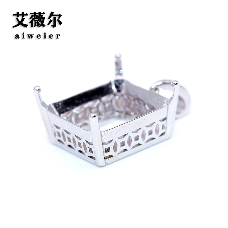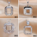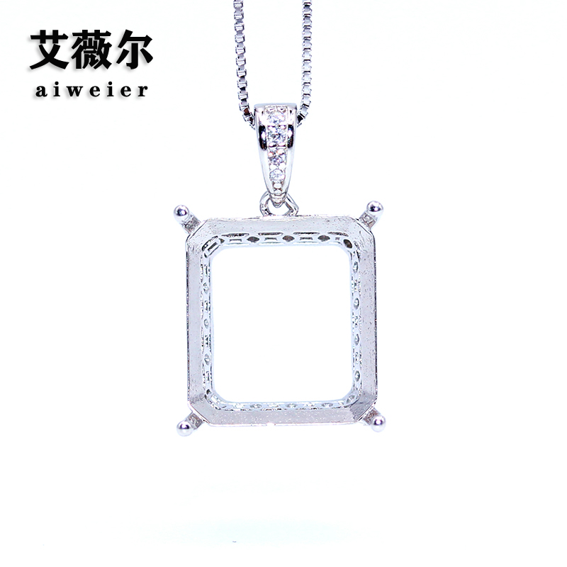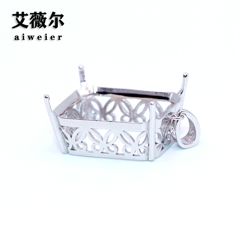精工S925纯银吊坠空托公主长方形定制镶嵌托简单四爪简约大尺寸