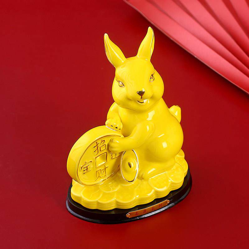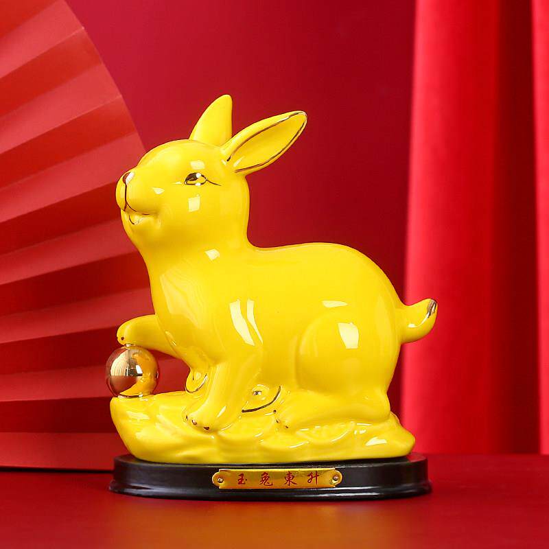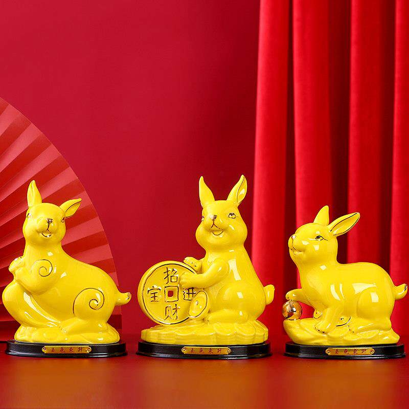黄色陶瓷生肖兔子摆件瓷器可爱招财风水客厅家居装饰工艺品小白兔
