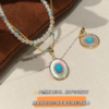 蜜蜂妈绿松石白贝母万能扣吊坠珍珠项链女叠戴复古锁骨颈链毛衣链