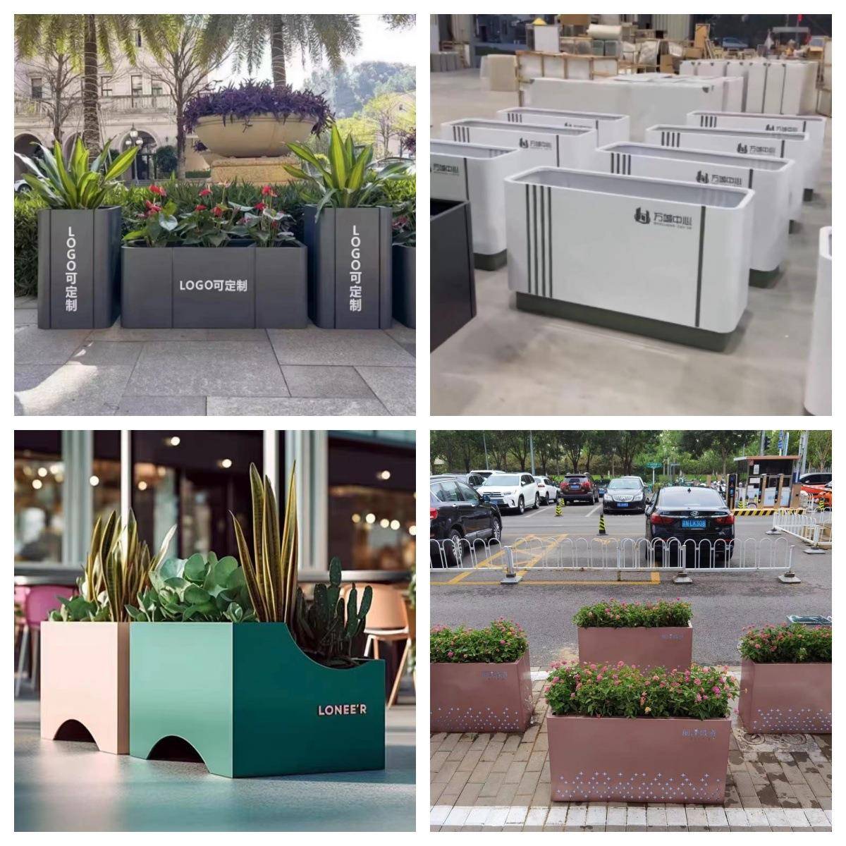 户外不锈钢城市花箱坐凳庭院商业街广场护栏花槽景观座椅花坛花架