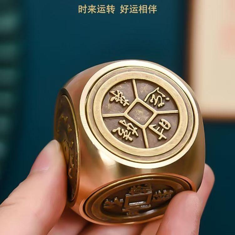 黄铜六面时来运转大号解压神器魔方手把件黄铜工艺品摆件把玩