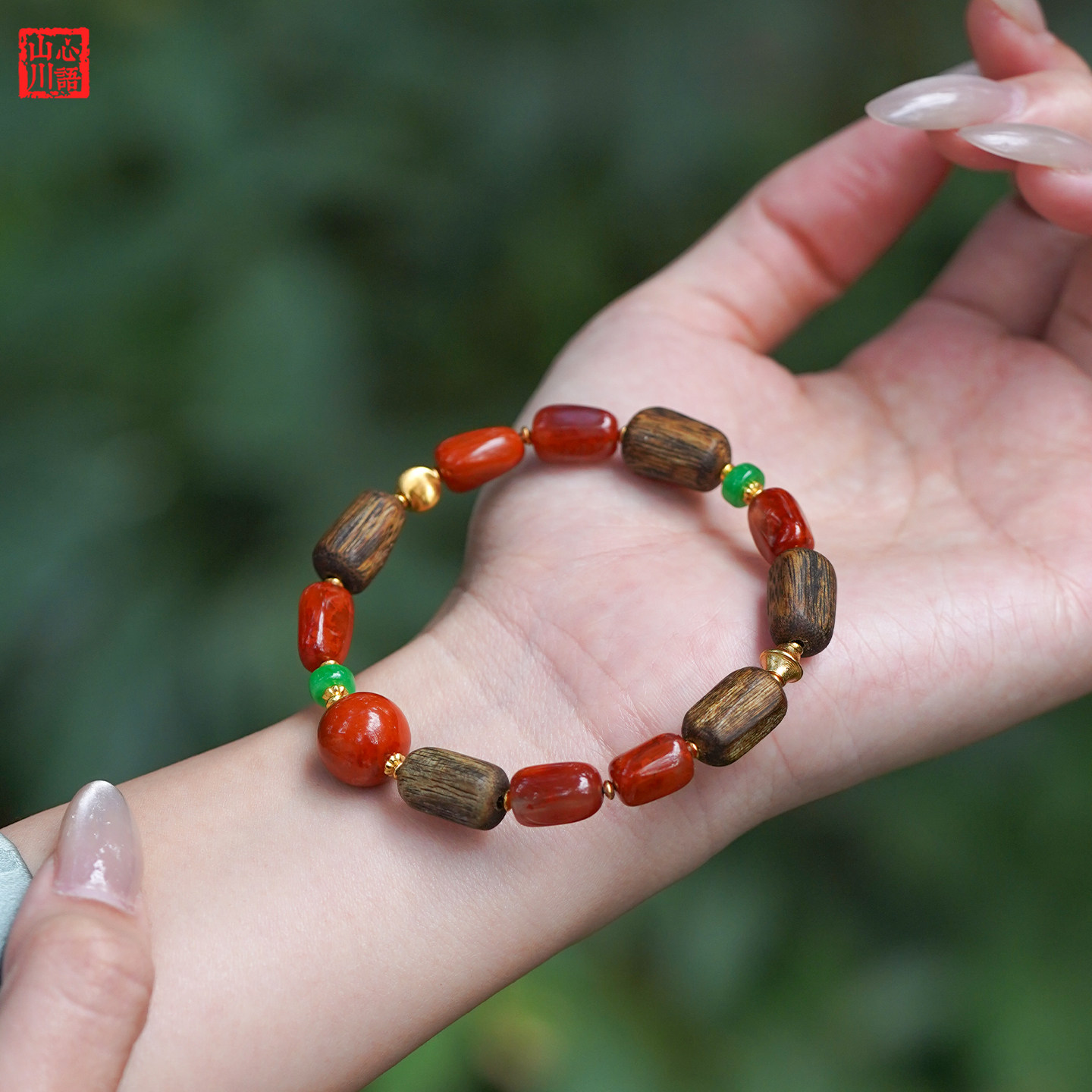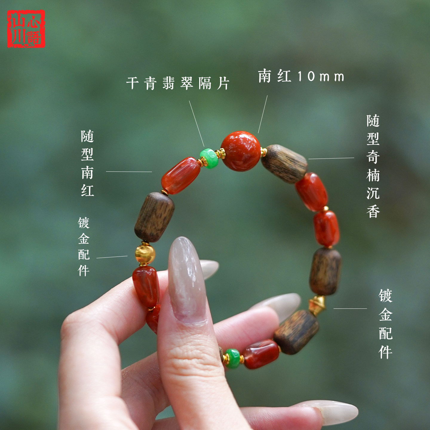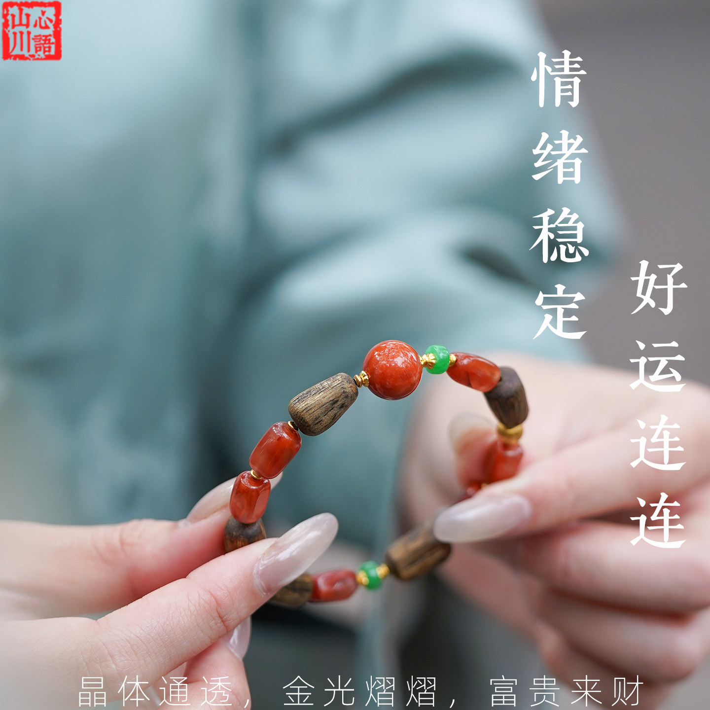 天然保真满肉南红沉香手串女士红色本命年火焰纹玛瑙招财转运手链