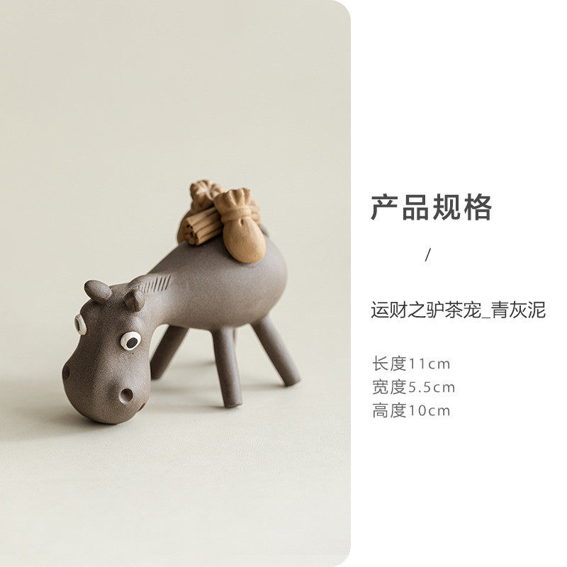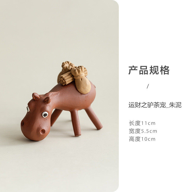 宜兴紫砂茶宠毛驴摆件雕塑招财进宝卡通茶具陶瓷茶道配件创意批发