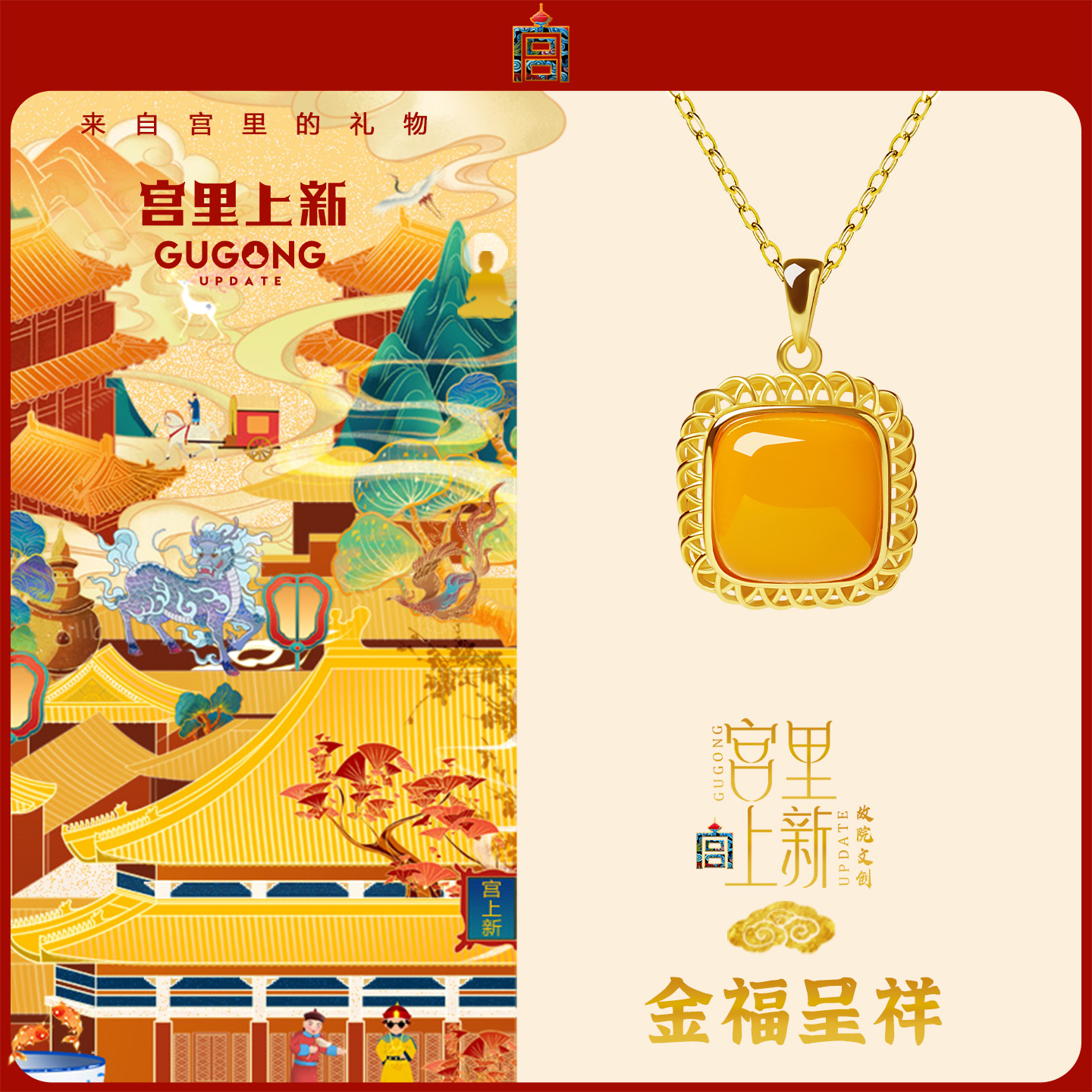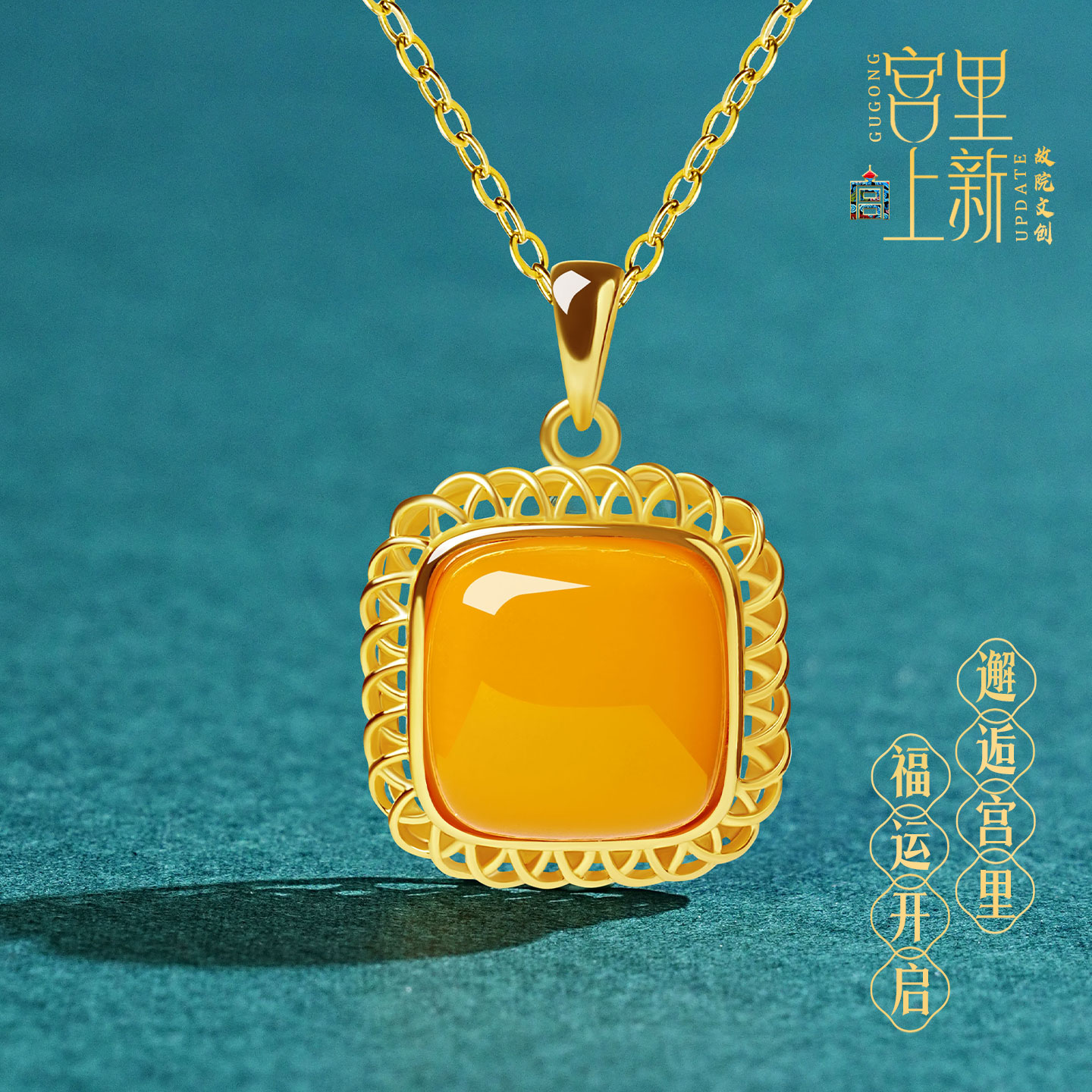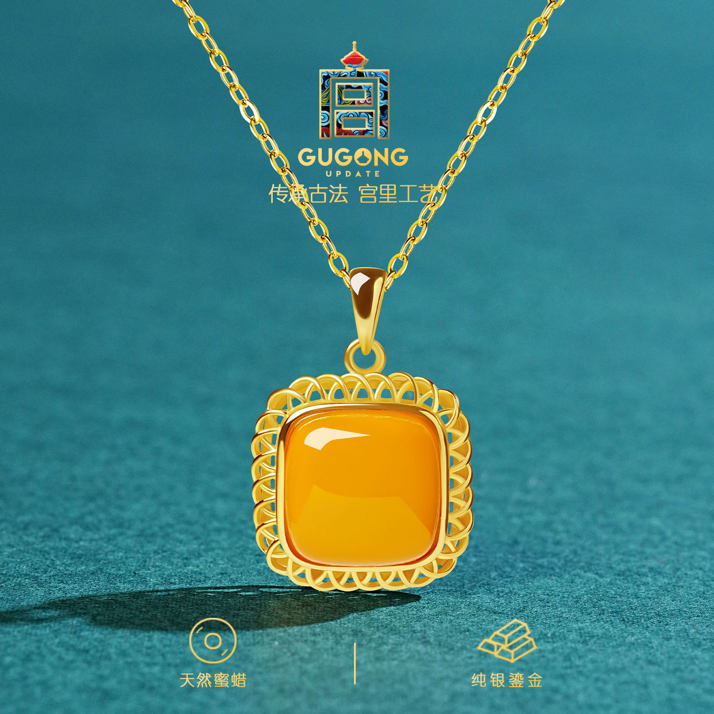 宫里上新无事牌吊坠女纯银蜜蜡方糖项链配饰新中式生日礼物送妈妈