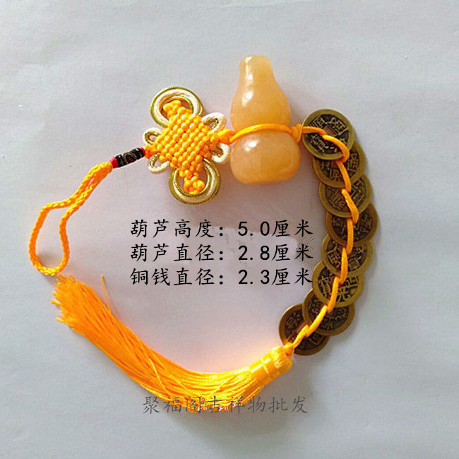 天然黄玉石葫芦铜钱挂件 葫芦五帝六帝铜钱家居装饰品