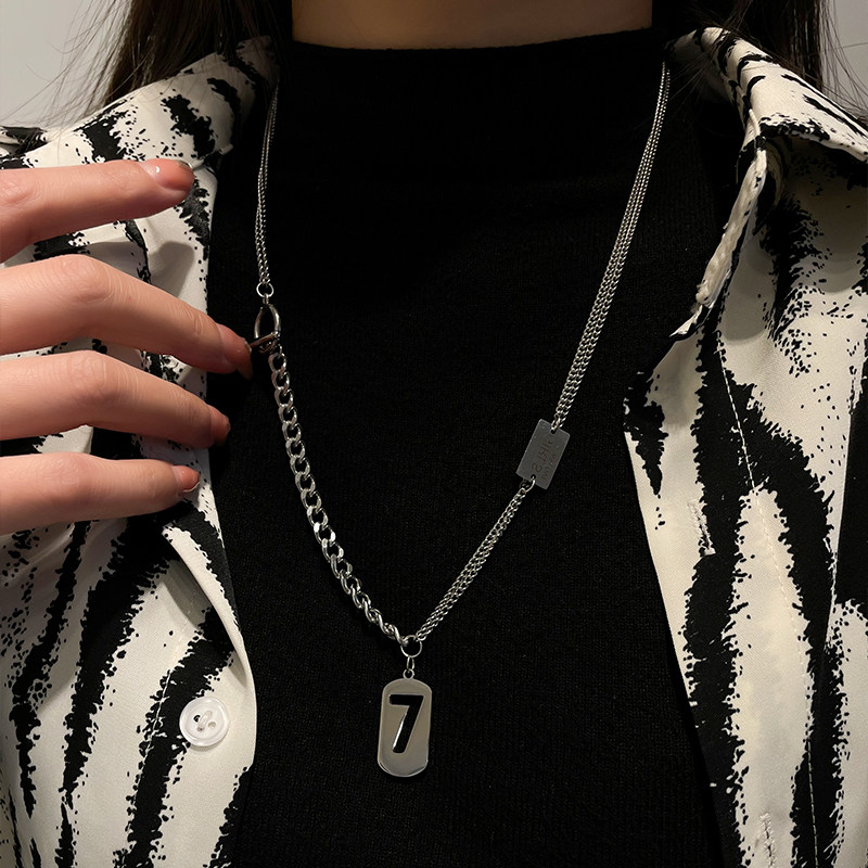 OUKECHUN幸运数字7项链女小众轻奢钛钢不掉色配饰ins嘻哈毛衣链男