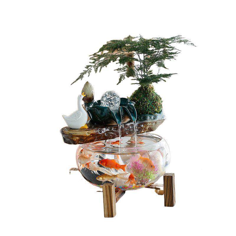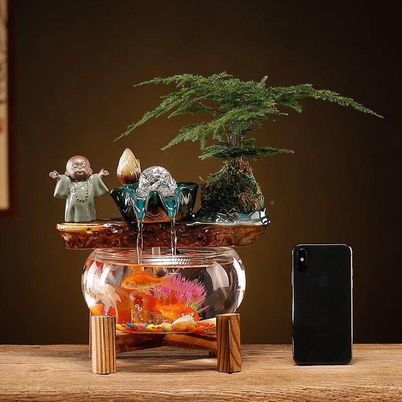 循环流水生玻公璃鱼缸家居客电视柜装饰财办厅Ca/PcFd3室招财摆件