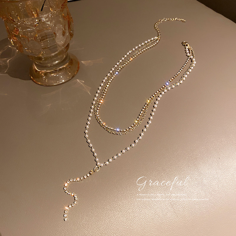 晚宴项链珍珠流苏多层叠戴胸链性感女颈链饰品轻奢小众礼服锁骨链