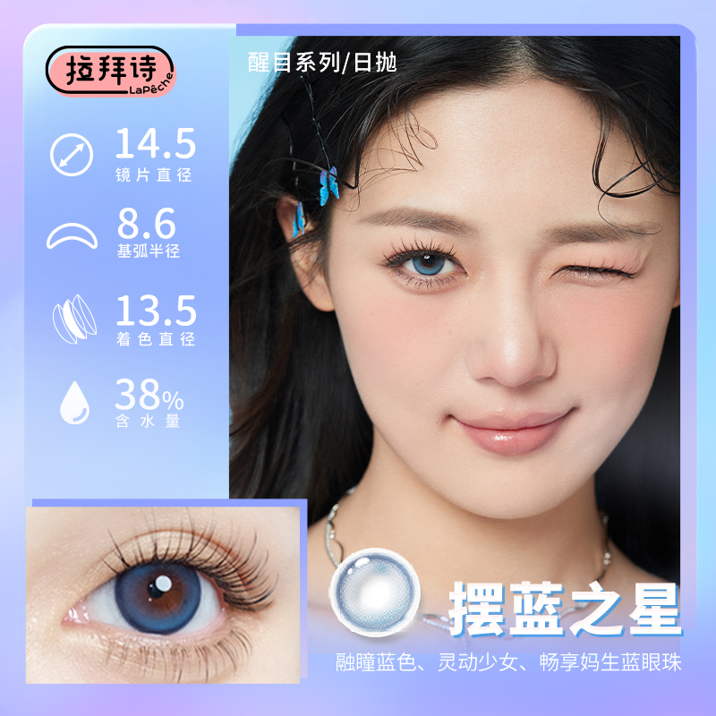 拉拜诗美瞳醒目日抛隐形近视眼镜大直径混血正品10片装焦绿靠边
