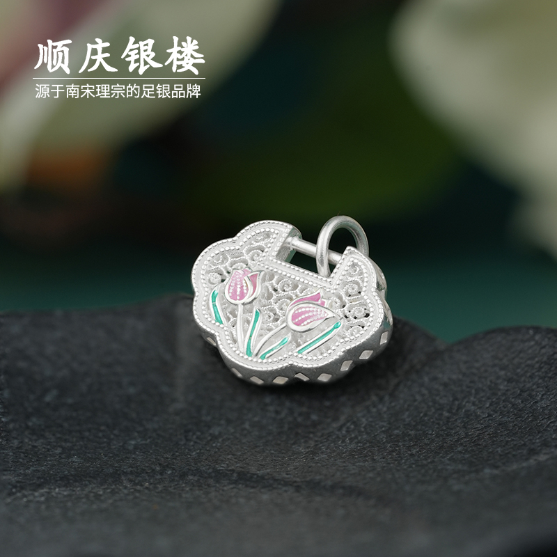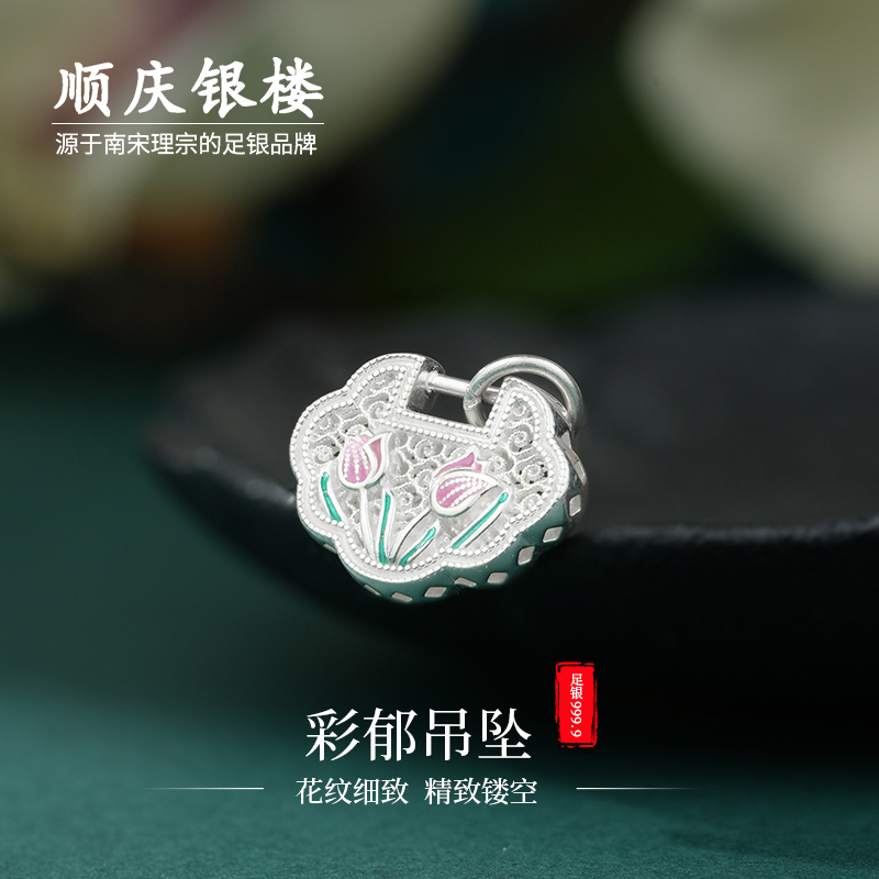 顺庆银楼S9999纯银吊坠女款彩郁吊坠足银锁骨链新中式古风送女友