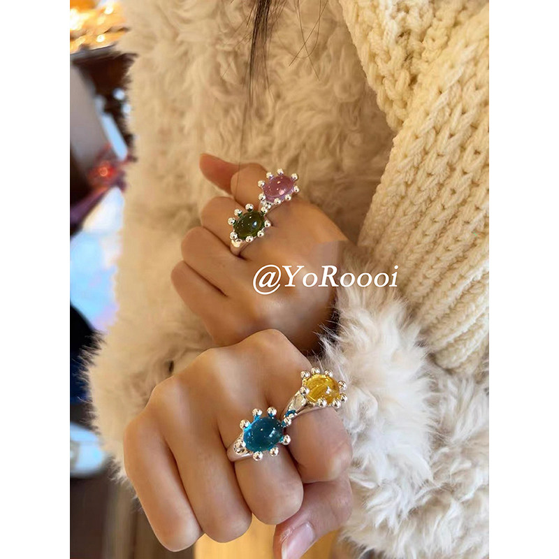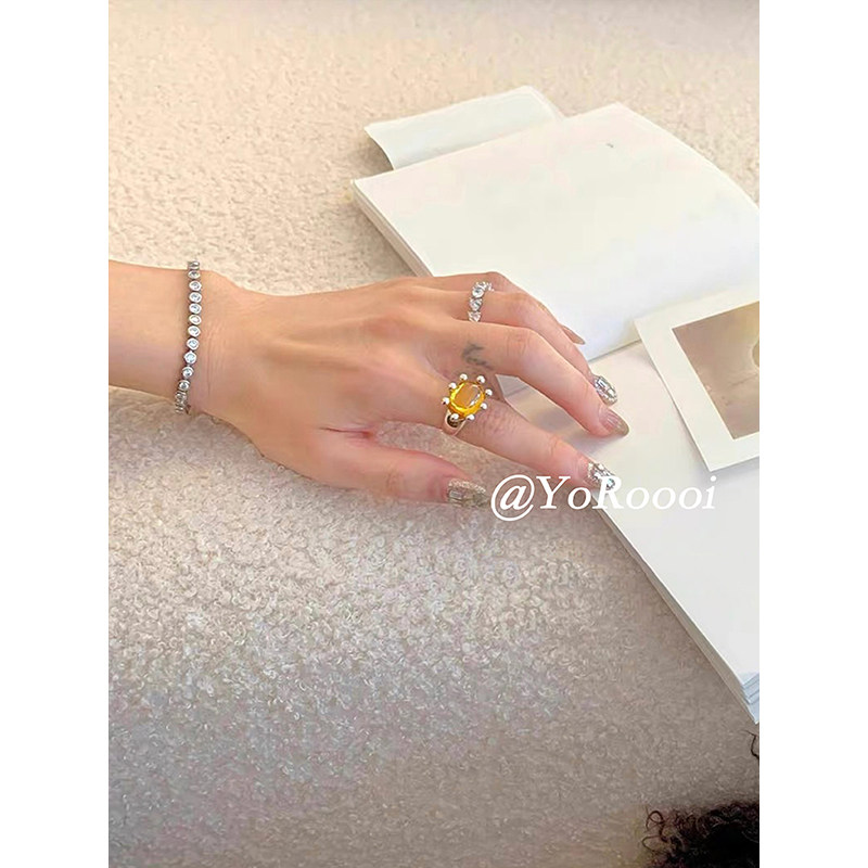 YoRoooi 韩系简约百搭高级感皓石质感复古戒指螃蟹开口指环食指戒